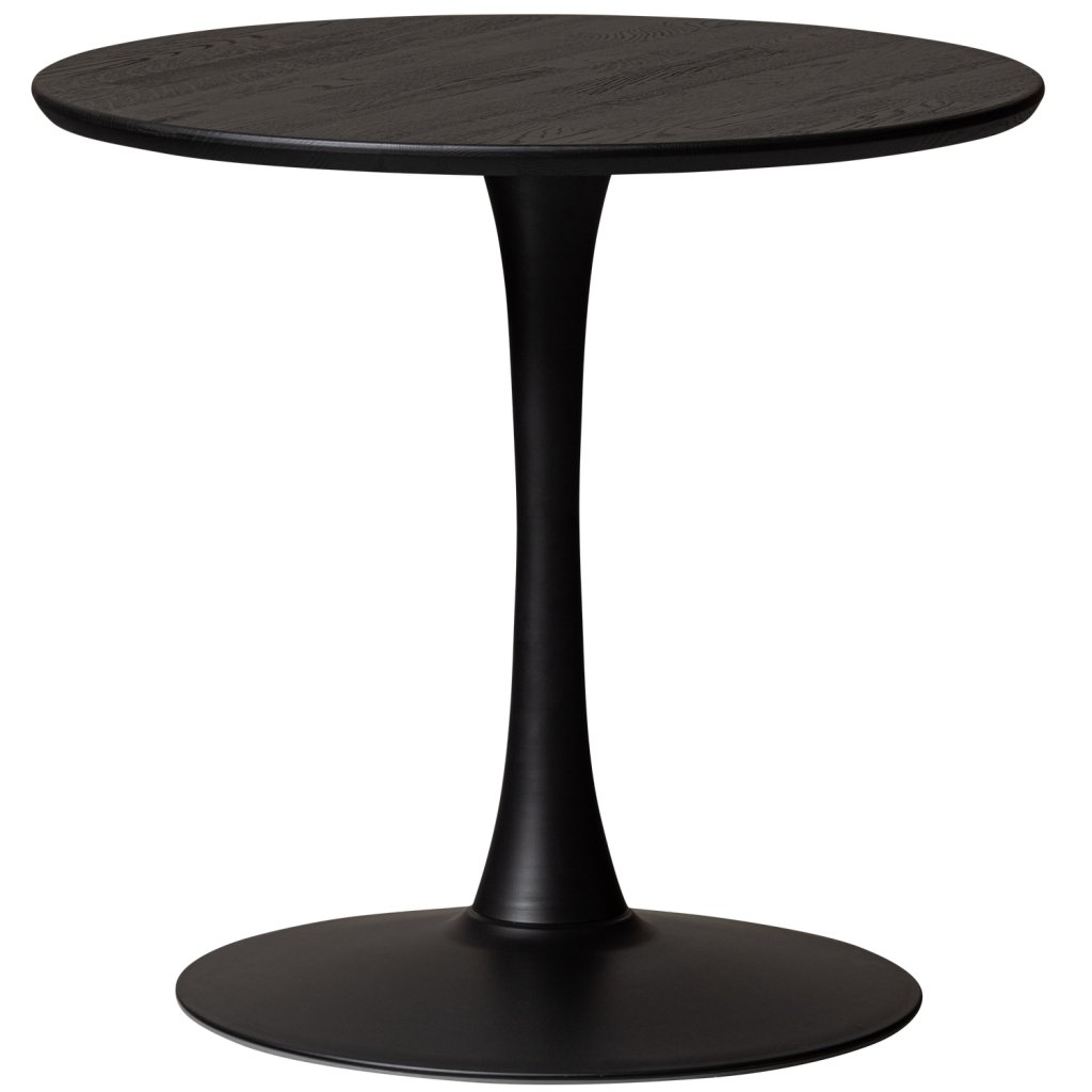 - Bistro pedestal base with oak tabletop (FSC Mix certified) - Create your ideal dining area - Round tabletop with playful finger-joint connection - H 74 cm x W 79 cm x D 79 cm Create your ideal dining space with the versatile Tablo series from the Dutch interior brand WOOOD. With countless combination options and a variety of sizes, you can effortlessly put together a dining area that perfectly suits your needs. For example, choose this stylish round dining table with a playful finger-joint connection! The tabletop is finished with a water-based dark stain, giving the wood a beautiful black colour. The top comes in combination with the Bistro pedestal base, made of metal with a black powder coating. The perfect dining table for cosy family dinners! Features The tabletop is made of finger-jointed oak wood strips, creating a playful pattern. Oak is known for its clearly visible grain pattern. The natural imperfections in the oak wood make each table truly unique. The tops are lightly brushed, which highlights the grain and enhances the richness of the lacquer colours. The oak used in our collections is FSC Mix certified. The metal in our collections comes in various finishes, such as powder coating and brass/antique brass. A powder coating gives the metal a luxurious matte appearance and provides long-lasting protection. It is a coating that is bonded to the metal using high temperatures. Dimensions: - Height: 74 cm - Width: 79 cm - Depth: 79 cm - Total weight: 19.7 kg -Maximum load capacity: 100 kg Maintenance Treated oak is very easy to maintain. Keep the furniture dust-free by wiping it regularly with a clean, dry cloth. Immediately remove any damp stains with a slightly damp cloth and a neutral cleaning agent, then allow the wood to air dry. Always use basic protection for wood, such as coasters under drinking glasses or hot pans. In case of damage, consult a specialist paint store for possible refinishing. All the metal in our collection is thoroughly treated and does not require additional treatment. If the metal becomes damaged, consult a specialised paint retailer. Treated metal can be easily cleaned with a slightly damp cloth and mild cleaning agent; drying the surface afterward ensures a streak-free finish. Delivery The tabletop and base are delivered separately and can be easily assembled using the included instructions. To protect hard floors, place felt gliders under the legs.Doplňkové parametry