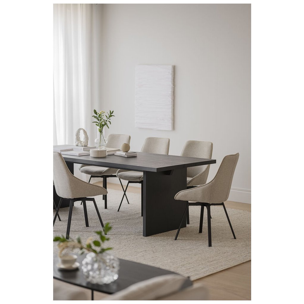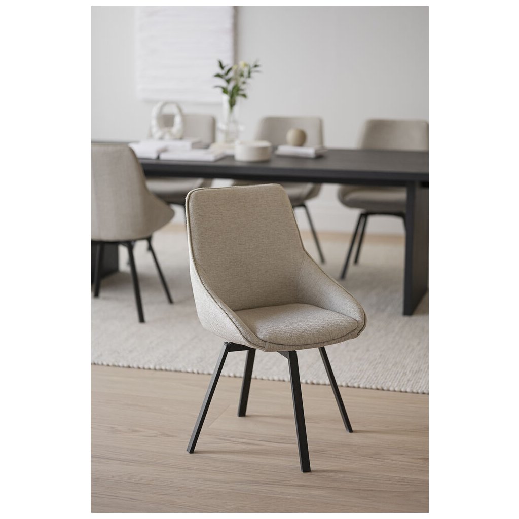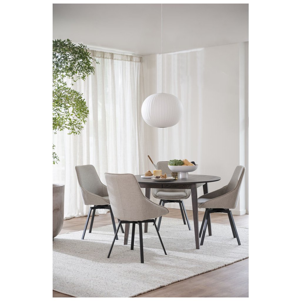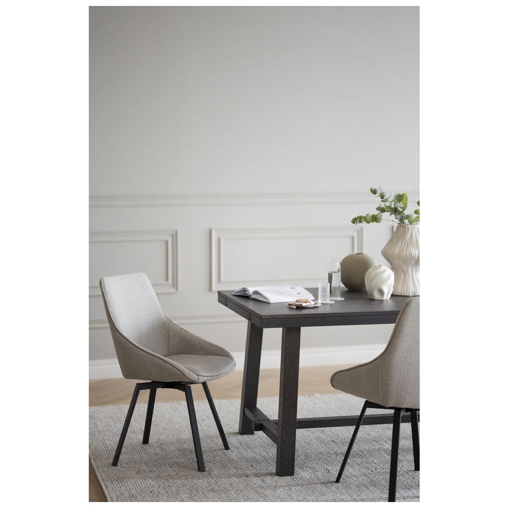 Designová jídelní židle ALISON od švédského designového výrobce nábytku ROWICO. ALISON je čalouněná židle v béžovém kabátu s pohodlným sedákem s opěrkou. Čtyři černě lakované kovové nohy, zajišťují maximální nosnost a stabilitu židle. Židle je otočná o 360 stupňů. Pohodlí je tu na prvním místě.