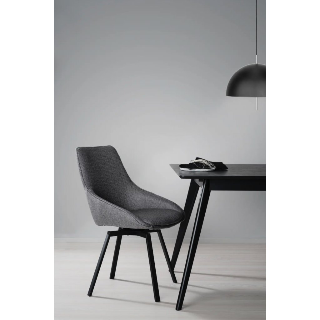 Designová jídelní židle ALISON od švédského designového výrobce nábytku ROWICO. ALISON je čalouněná židle v tmavě šedém kabátu s pohodlným sedákem s opěrkou. Čtyři černě lakované kovové nohy, zajišťují maximální nosnost a stabilitu židle. Pohodlí je tu na prvním místě.