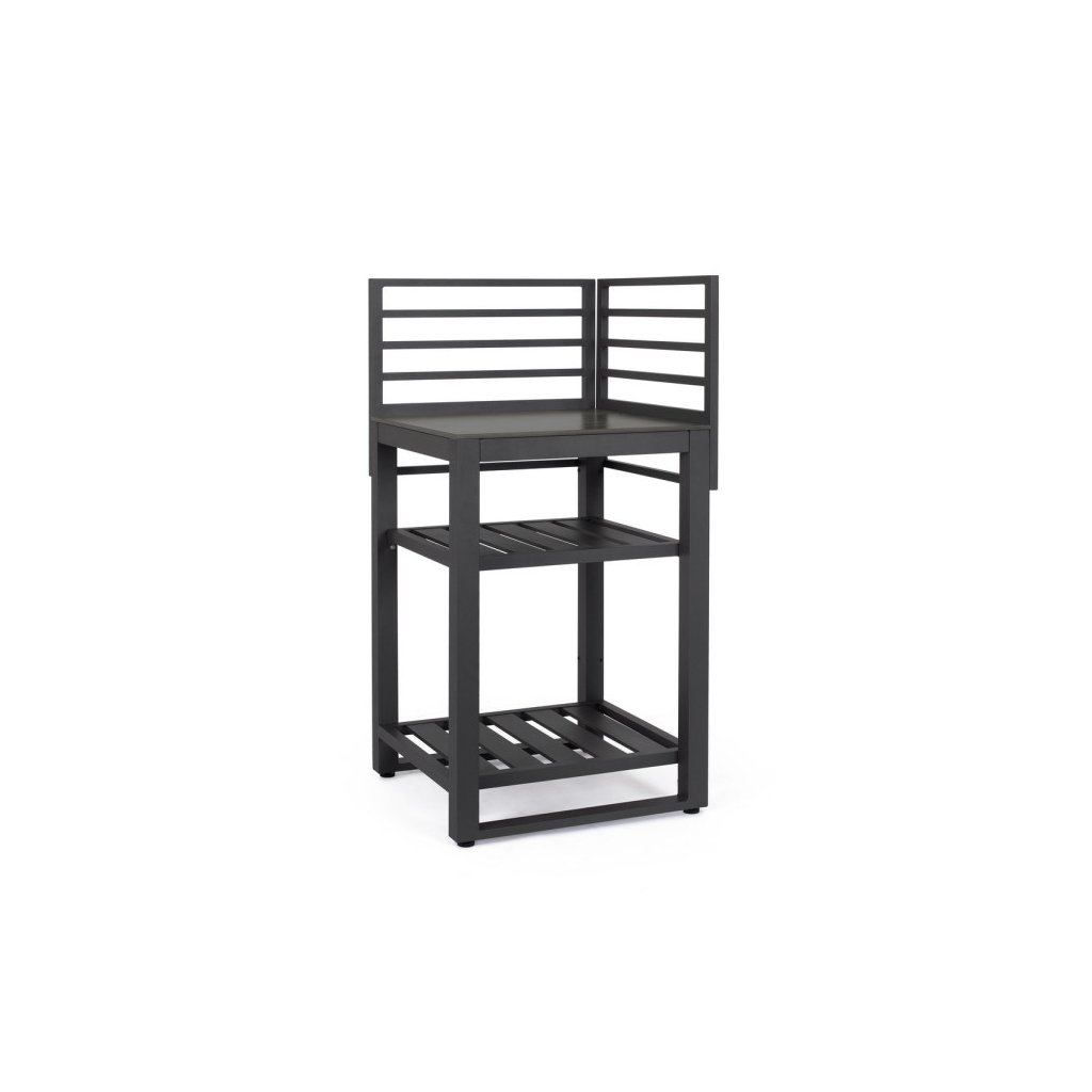 Modul zahradní linky ANIA od italského výrobce stylového nábytku BIZZOTTO v béžovém provedení. Tento modul zahradní kuchyňské linky je vyroben z hliníku, jde o konečnou, respektive rohovou skříňku, kde jsou 2 otevřené poličky. Nahoře jako pracovní deska slouží tvrzený kámen v provedení černé břidlice. Složte s dalšími 2 kusy a máte parádní zahradní kuchyňku. K dostání i v dalších barevných variantách.