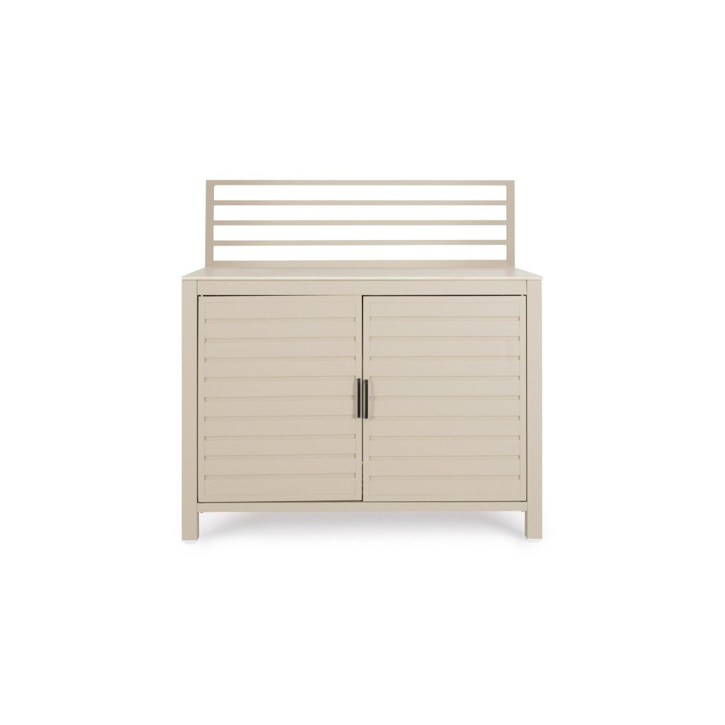 Modul zahradní linky ARIA od italského výrobce stylového nábytku BIZZOTTO v béžovém provedení. Tento modul zahradní kuchyňské linky je vyroben z hliníku, má 2 dvířka, za kterými najdete 2 a 1 poličku. Nahoře jako pracovní deska slouží tvrzený kámen v provedení travertin. Složte s dalšími 2 kusy a máte parádní zahradní kuchyňku. K dostání i v dalších barevných variantách.