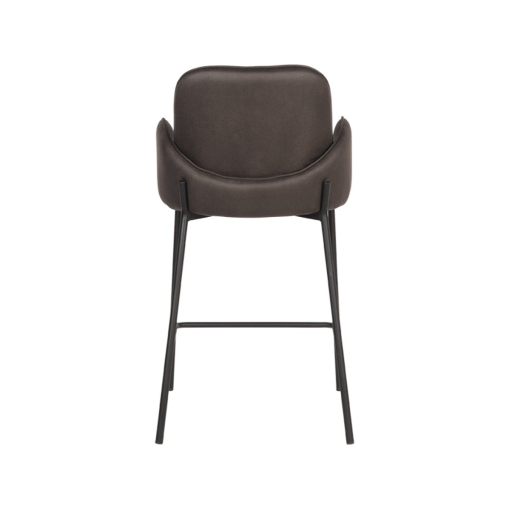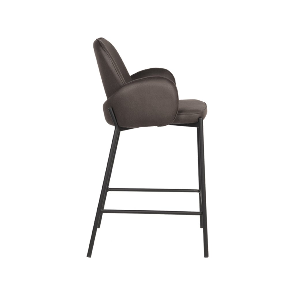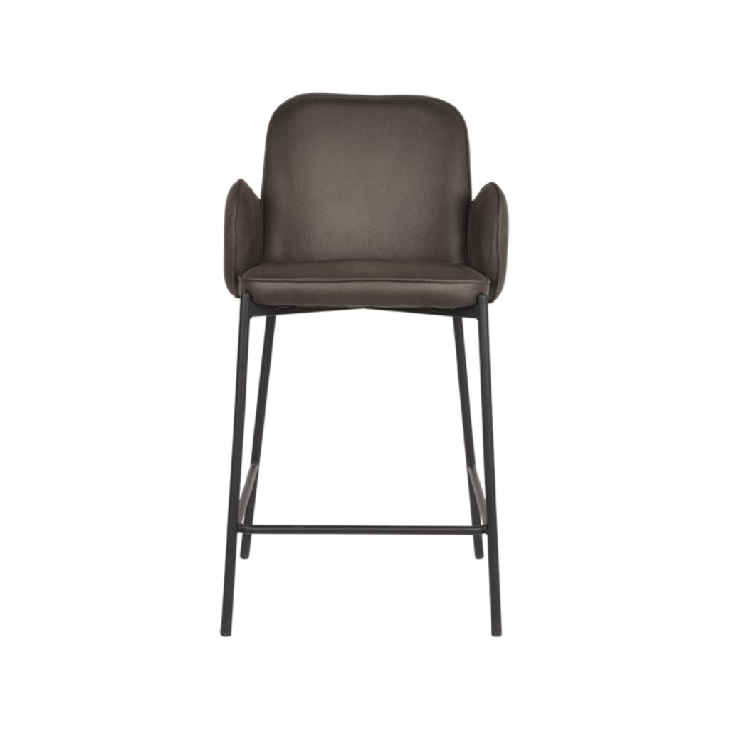 Barová židle JARI od holandského výrobce industriálního nábytku LABEL51. Barová židle JARI je super elegantní, trendy a robustní barová židle. JARI je vyrobená z antracitového mikrovlákna, má luxusní kulatý sedák, opěrák a má područky. Tato kombinace dělá z JARI luxusní barovou stoličku s maximálním komfortem. Područky vedou za opěradlo, a dodávají barové židli jedinečný vzhled, který je také zezadu velmi pěkný. Štíhlé, ale souvislé černé nohy, na kterých je usazen sedák, dodávají barové židli vzdušný vzhled. Konec rámu se trochu rozbíhá na čtyřech stranách, což vytváří hravý efekt.