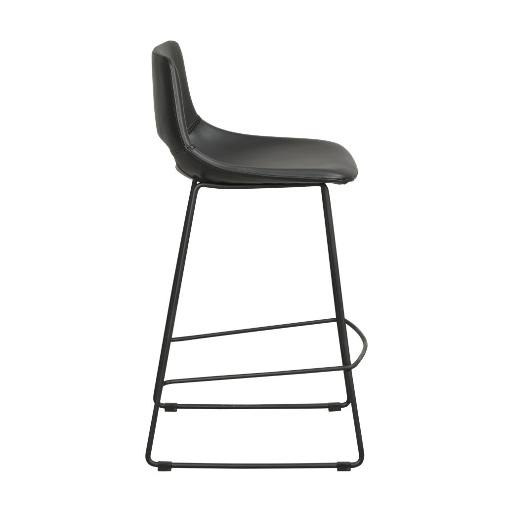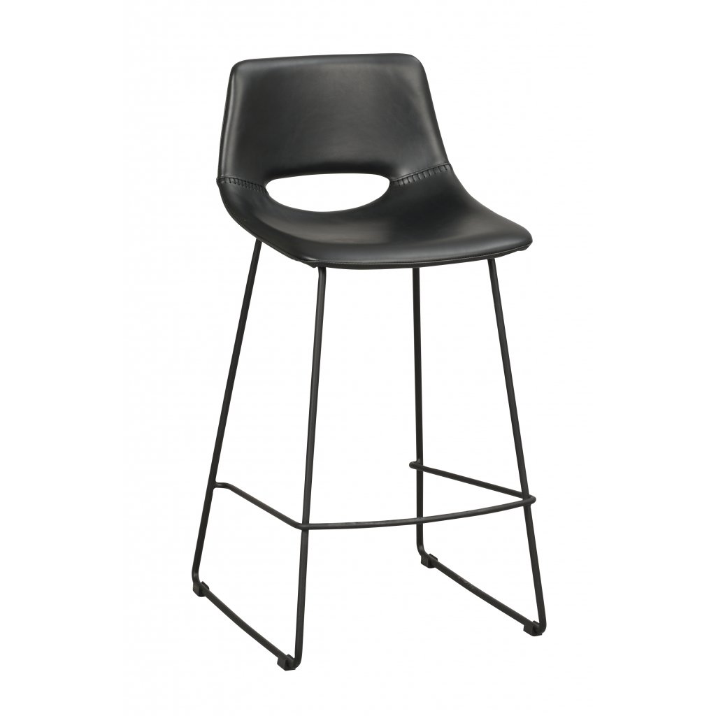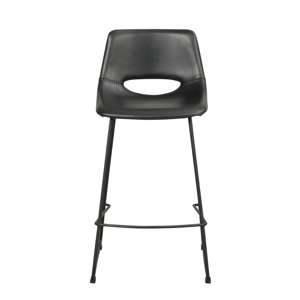 Stylová barová židle MANNING od švédského designového výrobce ROWICO. Židle má spodní část ze 4 tenkých kovových nohou v černé barvě, které jsou propojeny do 2 celků. To dává židli krásný design, ale také pevnost a odolnost. Vrchní sedák je potažen černou umělou kůží a zaujme zejména otvor v zadní části opěrky.