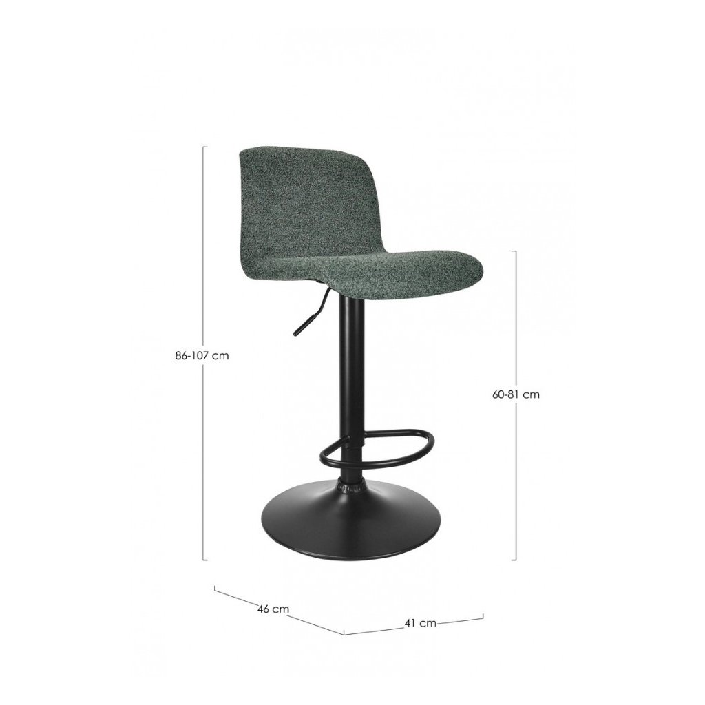 Nastavitelná barová židle RAFAEL od italské firmy stylového nábytku BIZZOTTO s černou kovovou nohou sedákem v zelené barvě.