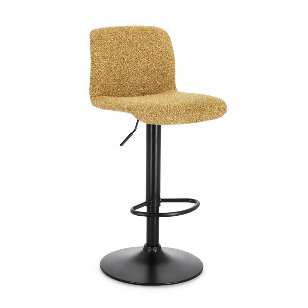 Barová židle RAFAEL od italské firmy stylového nábytku BIZZOTTO. Židle RAFAEL má velice kvalitní provedení. Je tvořena černou kovovou nohou, která zajišťuje maximální stabilitu a nosnost. Sedák je čalouněn v polyesterové látce v krásné žluté barvě. Trendy otočná židle má nastavitelnou výšku sedadla, díky čemuž je multifunkční