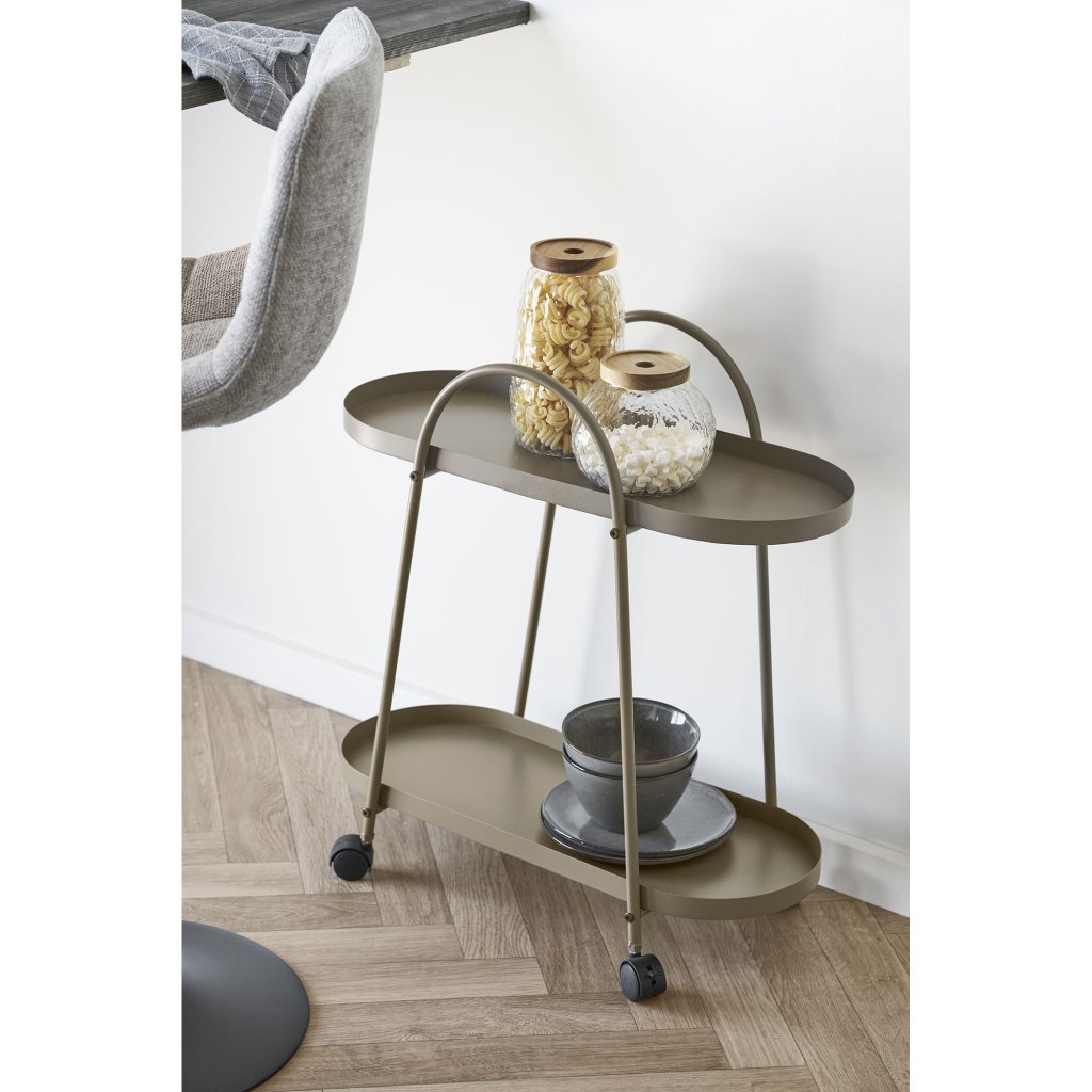 Stylový barový vozík EMPOLI od dánského výrobce nádherného nábytku HOUSE NORDIC. Barový vozík s dvěma policemi je stylový a praktický pomocník do každé moderní domácnosti. Konstrukce z odolné oceli v elegantní hnědé barvě zajišťuje stabilitu a dlouhou životnost. Dvě úložné plochy poskytují dostatek místa pro nápoje, sklenice, servírovací doplňky nebo dekorace. Horní deska unese až 5 kg, což je ideální pro každodenní použití i příležitostné servírování při setkání s přáteli. Díky kolečkům se vozík snadno přesouvá, a tak máte vše potřebné vždy po ruce.