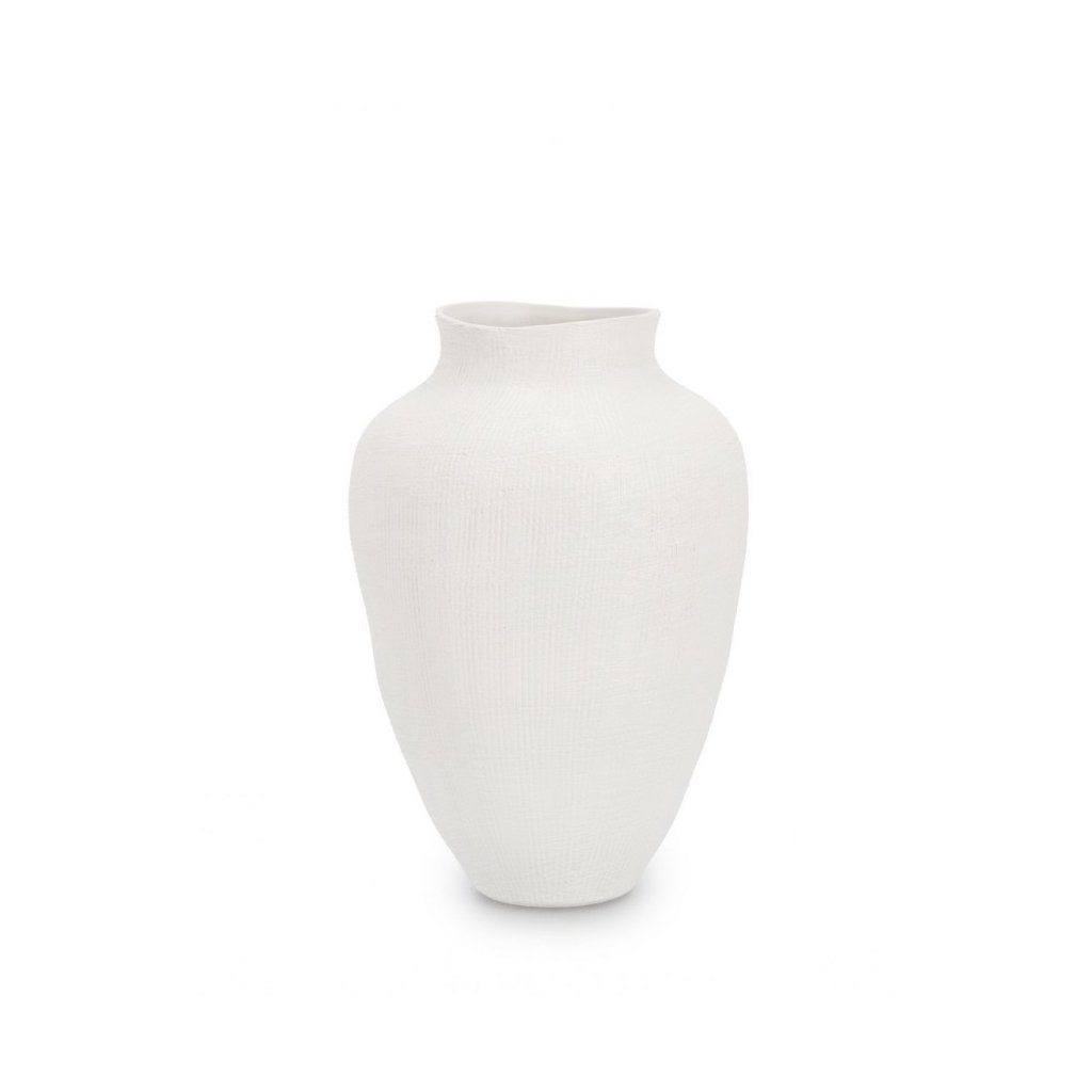 Designová váza PAPYRUS od italského výrobce stylového nábytku BIZZOTTO. Krásná váza PAPYRUS je kompletně vyrobena z keramiky v oválné podobě. Povrch je v nádherné bílé barvě. Je vysoká 29,8 cm a průměr je 20 cm. Hrdlo má oproti zbytku vázy velmi úzké. Poznávacím znakem jsou vroubky na povrchu, které z vázy PAPYRUS dělají velmi krásný a unikátní výrobek.