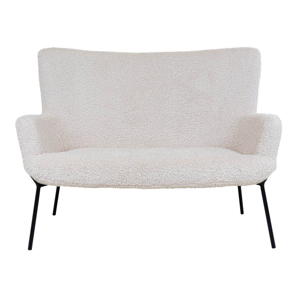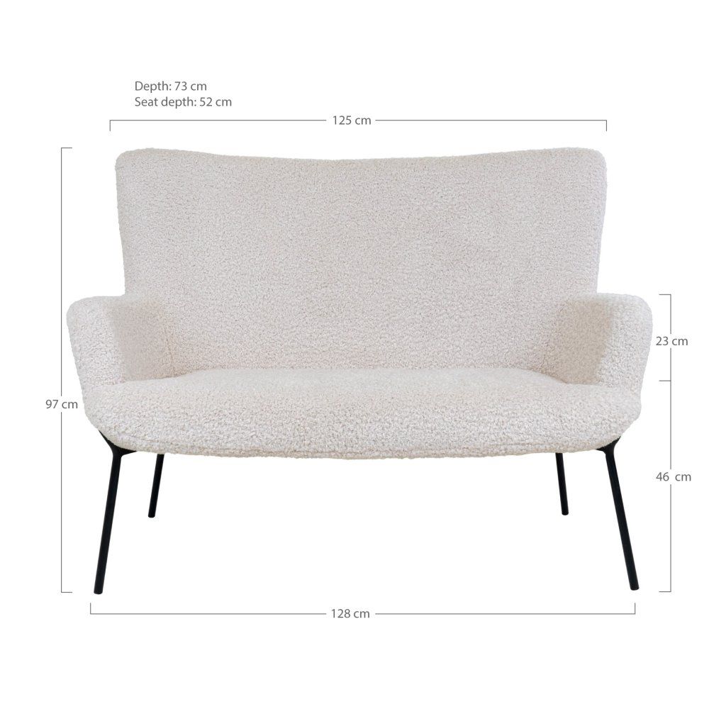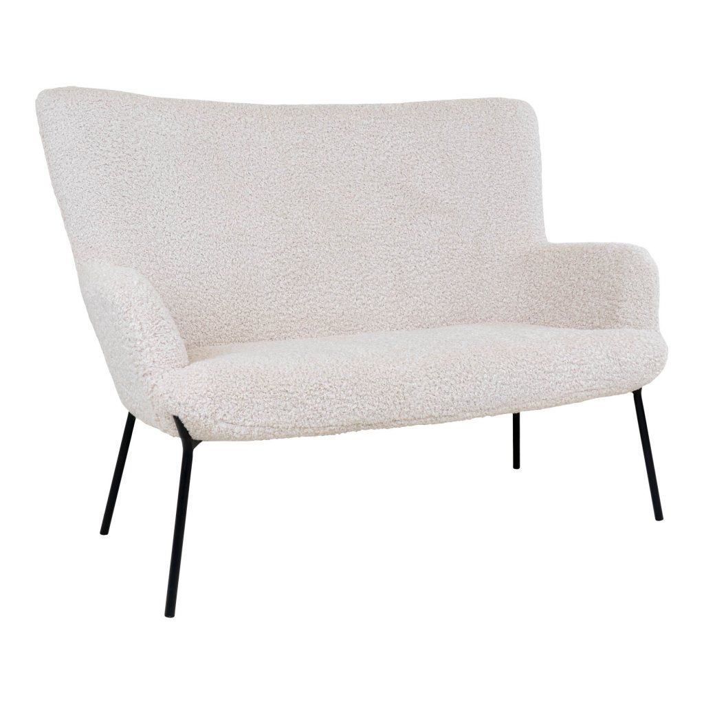 Designová bílá pohovka GLASGOW od dánské značky nádherného skandinávského nábytku HOUSE NORDIC. Dvoumístná pohovka je dodávána s nohami z tenkého kovu v černé barvě, rámem a kostrou z kovu a borovicového dřeva, výplní z pevné polyuretanové pěny a povlakem z polyesteru v provedení bílé umělé ovčí vlny. Skvělý společník pro relaxování a odpočinek, jehož potah si zaručeně zamilujete.