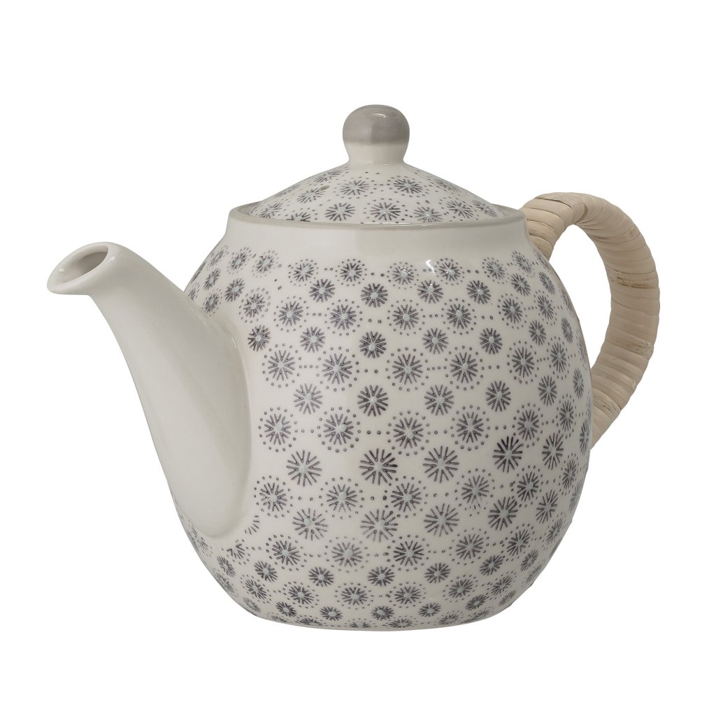 Stylová a krásná konvička na čaj ELSA od dánské značky nádherného nábytku BLOOMINGVILLE. ELSA je vyrobena z kameniny s krásným potiskem v šedých tónech s reliéfním efektem. Rukojeť je vyrobena z bambusu. Pojme až 1200 ml a je opravdu jedinečným kouskem. Krásný kousek se středomořským nádechem, díky kterému bude ranní čaj zase o něco příjemnější.
