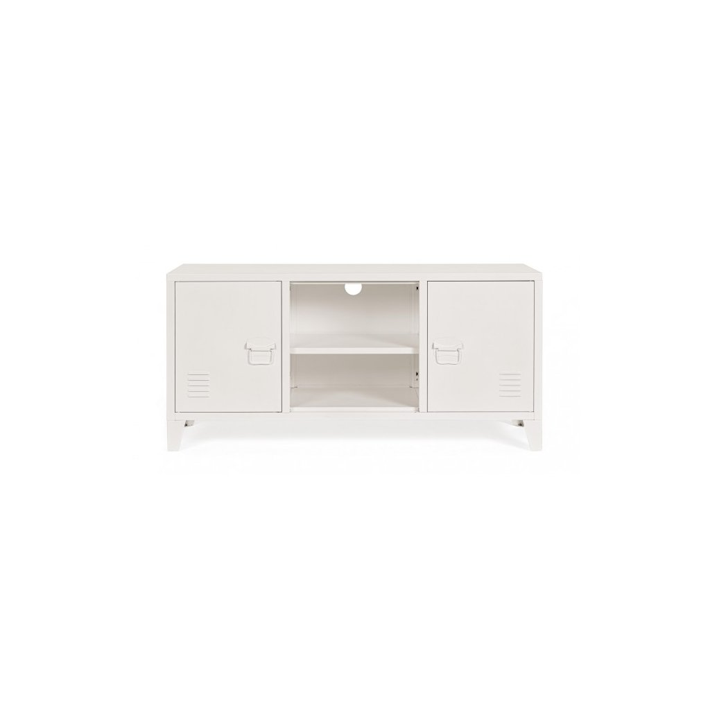 Designový TV stolek CAMBRIDGE od italského výrobce stylového nábytku BIZZOTTO z oceli s epoxidovou práškovou barvou v bílém provedení.
