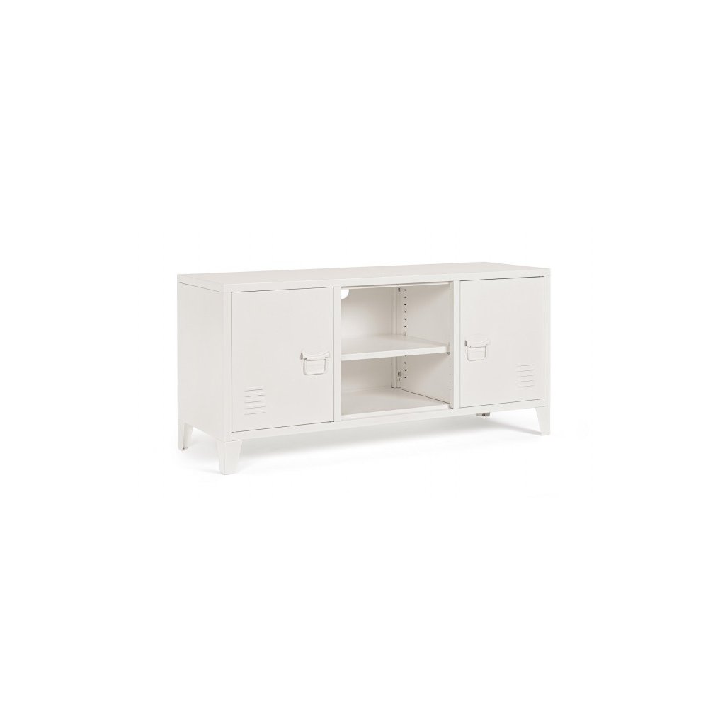 Designový TV stolek CAMBRIDGE od italského výrobce stylového nábytku BIZZOTTO. Stolek CAMBRIDGE je vyrobený z oceli s epoxidovou práškovou barvou v bílém provedení. Maximální stabilitu, nosnost a pevnost zajišťují 4 ocelové nohy. TV stolek obsahuje 1 nastavitelnou polici a otvor na kabely v prostřední přihrádce. Dvě další přihrádky mají dvířka. Díky přihrádkám, polici a úložnému prostoru je stolek velmi prostorný. Skvěle vynikne v interiéru v industriálním stylu, ale výborně bude vypadat v každé moderní domácnosti.