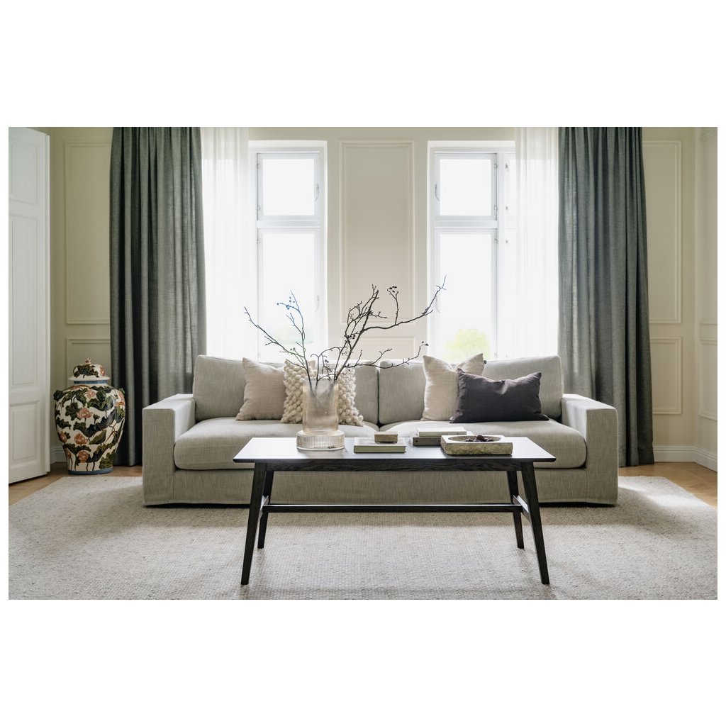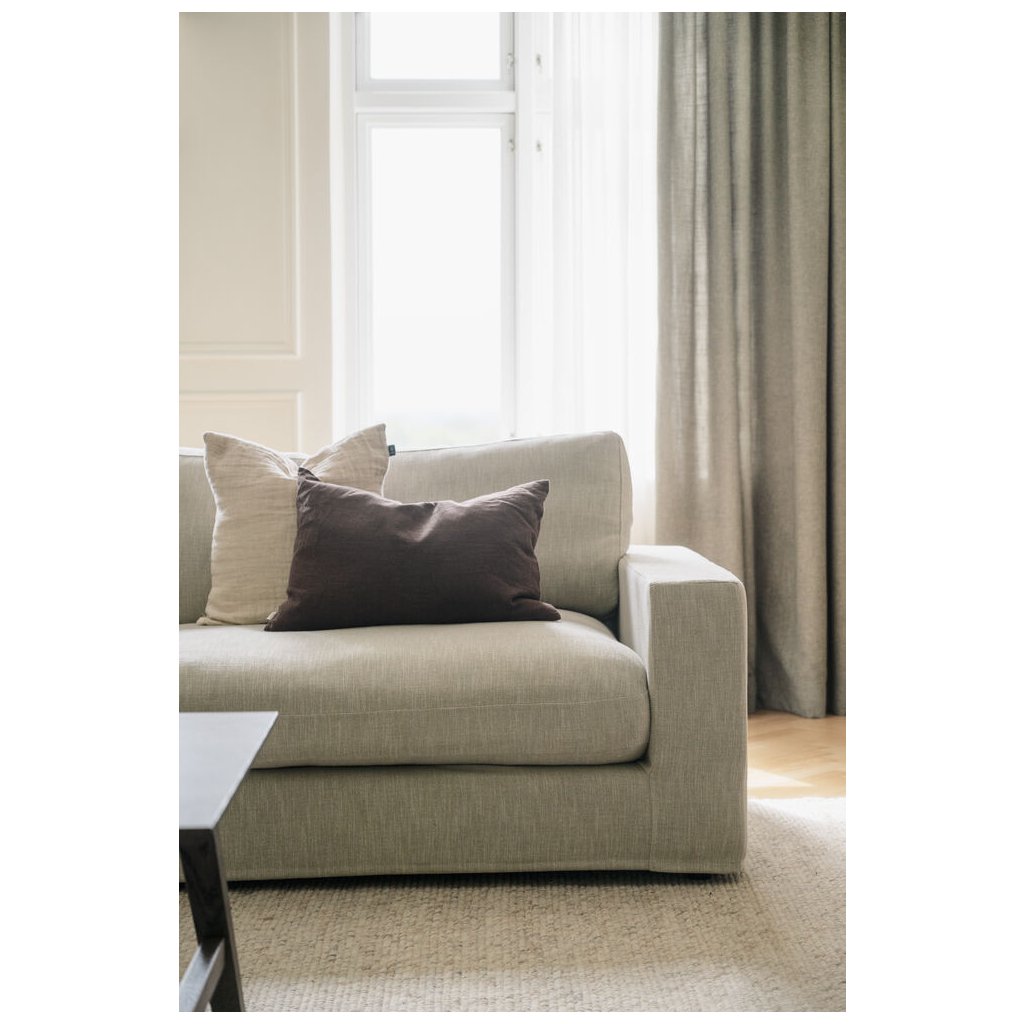 Čtyřmístná pohovka LANGDON od švédského výrobce kvalitního nábytku ROWICO. LANGDON nabízí mimořádně prostorné a hluboké sezení, které je navržené pro maximální pohodlí. Sedák i opěradlo jsou vyplněny kombinací měkkého peří, polyeterovou pěnou, syntetickou výplní a plstí, které se skvěle přizpůsobí. Všechny polštáře, a dokonce i samotný rám, mají snímatelný potah, čímž zvyšují praktickou stránku pohovky a zajišťují snadnou údržbu. Potahy lze prát v pračce, což je ideální pro domácnosti s aktivním životním stylem. Pohovka je vyrobena v Evropě a nese FSC certifikaci, což z ní činí udržitelnou a zodpovědnou volbu. Látka z kombinace polyesteru a bavlny v neutrálním odstínu připomíná len a dodává pohovce přirozený vzhled.