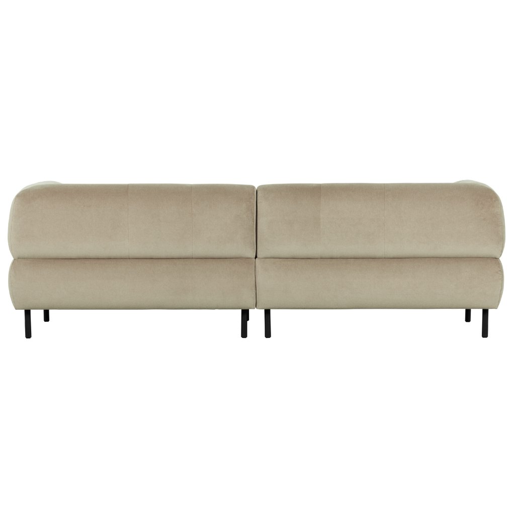 Designová pohovka LLOYD od holandského výrobce kvalitního nábytku WOOOD. Sedačka má černé nohy z kovu. Hlavní část sedačky tvoří robustní a zároveň elegantní sedací část s opěrkami. Vše zahrnuje pevnou a kvalitní polyuretanovou pěnu potaženou krásným béžovým potahem z příjemného sametu. Na sedačku se pohodlně vejdou minimálně 4 osoby.