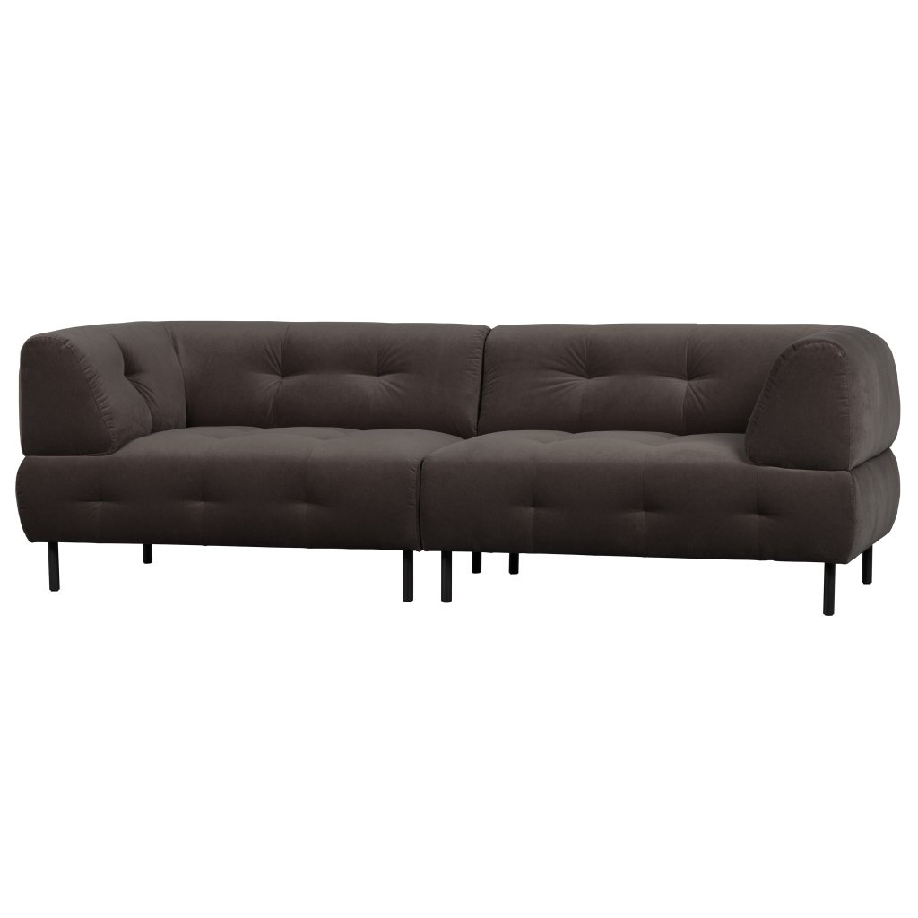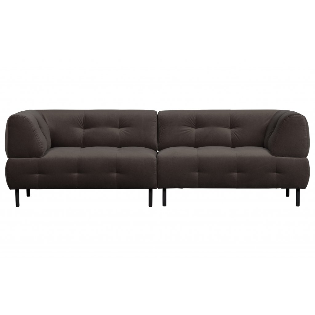 Designová pohovka LLOYD od holandského výrobce kvalitního nábytku WOOOD. Sedačka má černé nohy z kovu. Hlavní část sedačky tvoří robustní a zároveň elegantní sedací část s opěrkami. Vše zahrnuje pevnou a kvalitní polyuretanovou pěnu potaženou krásným černým potahem z příjemného sametu. Na sedačku se pohodlně vejdou minimálně 4 osoby.