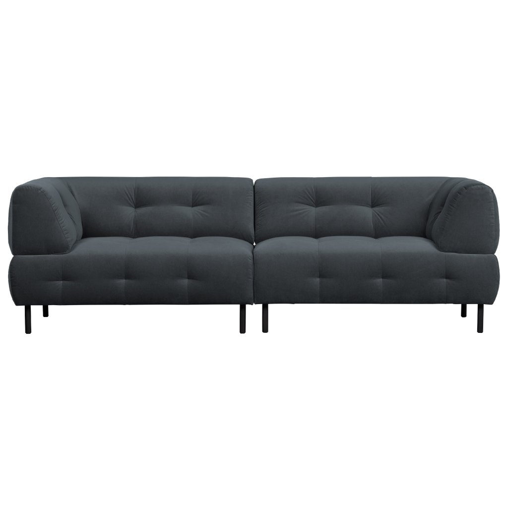 Designová pohovka LLOYD od holandského výrobce kvalitního nábytku WOOOD. Sedačka má černé nohy z kovu. Hlavní část sedačky tvoří robustní a zároveň elegantní sedací část s opěrkami. Vše zahrnuje pevnou a kvalitní polyuretanovou pěnu potaženou krásným tmavě modrým potahem z příjemného sametu. Na sedačku se pohodlně vejdou minimálně 4 osoby.
