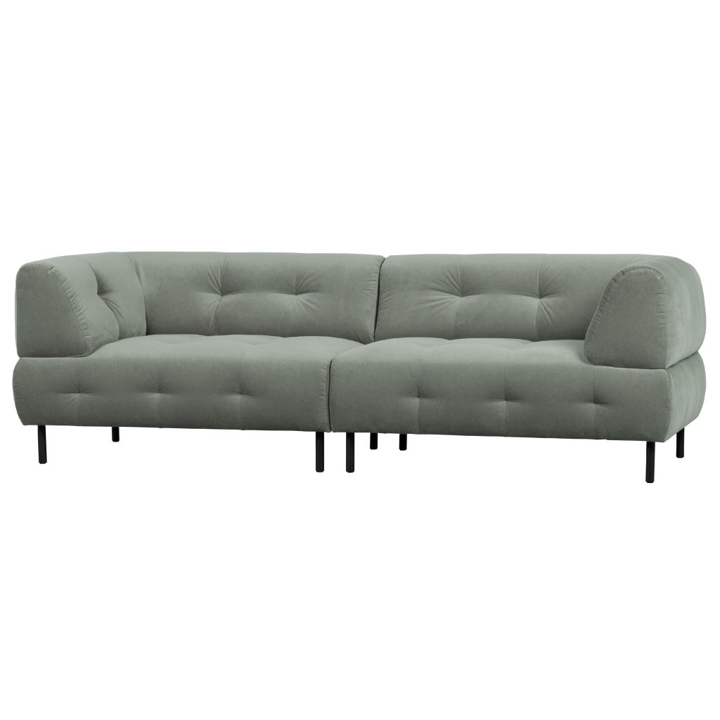 Designová pohovka LLOYD od holandského výrobce kvalitního nábytku WOOOD. Sedačka má černé nohy z kovu. Hlavní část sedačky tvoří robustní a zároveň elegantní sedací část s opěrkami. Vše zahrnuje pevnou a kvalitní polyuretanovou pěnu potaženou krásným šedým potahem z příjemného sametu. Na sedačku se pohodlně vejdou minimálně 4 osoby.