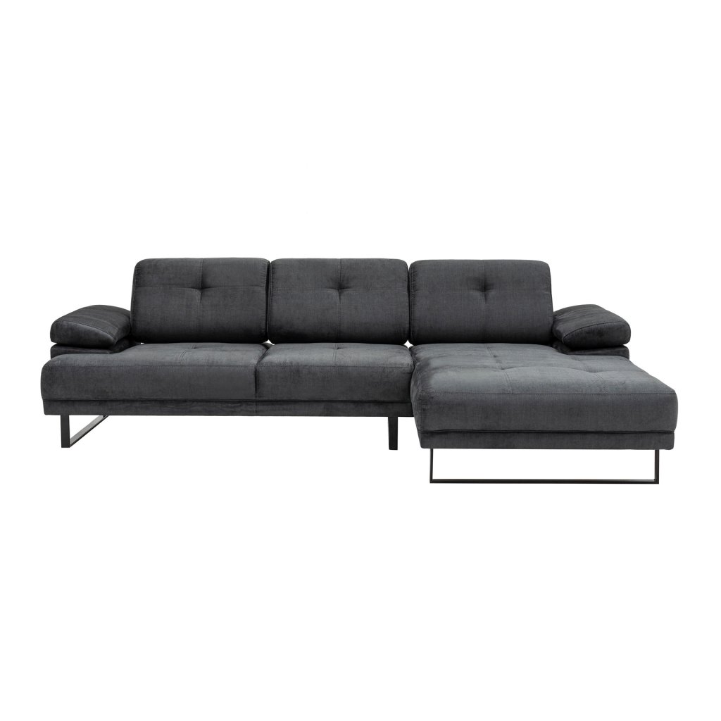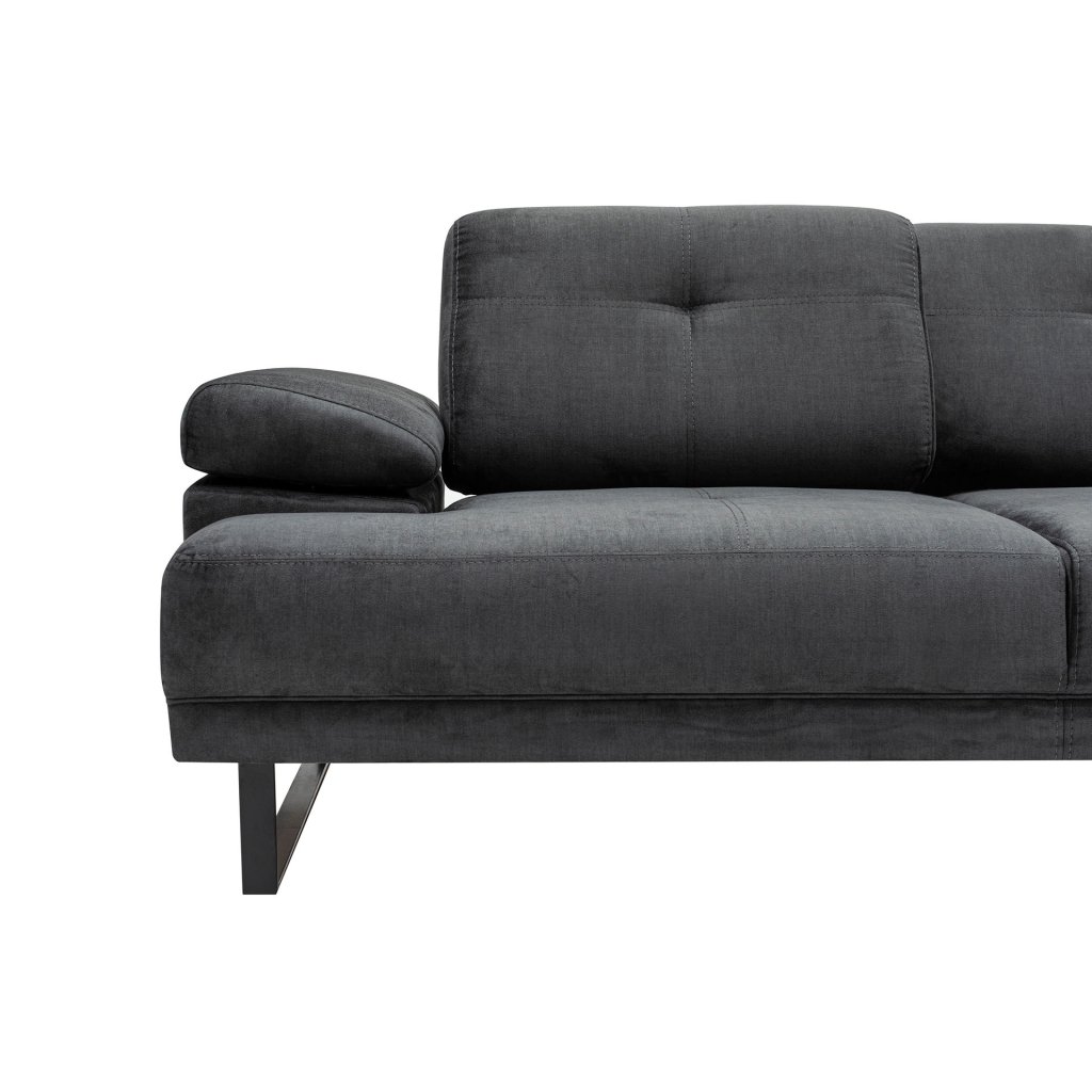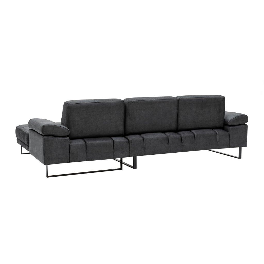 Krásná a stylová rohová pohovka MUSTANG od výrobce nábytku a pohovek Hanah Home. Stylová pohovka MUSTANG je tvořena kovovými nohami, které dodávají maximální stabilitu, nosnost a pevnost. Nohy mají černou matnou barvu a jsou připevněné ke konstrukci z bukového dřeva a dřevotřísky. Na konstrukci je přidělaná pěna pro vaše maximální pohodlí. Pohovku dále tvoří kvalitní potah z polyesteru v antracitové barvě. Pro ještě větší komfort je pohovka doplněna zadní pohyblivou opěrkou s nastavitelným ramenním mechanismem. Pohovka je velmi prostorná díky lenošce vpravo.