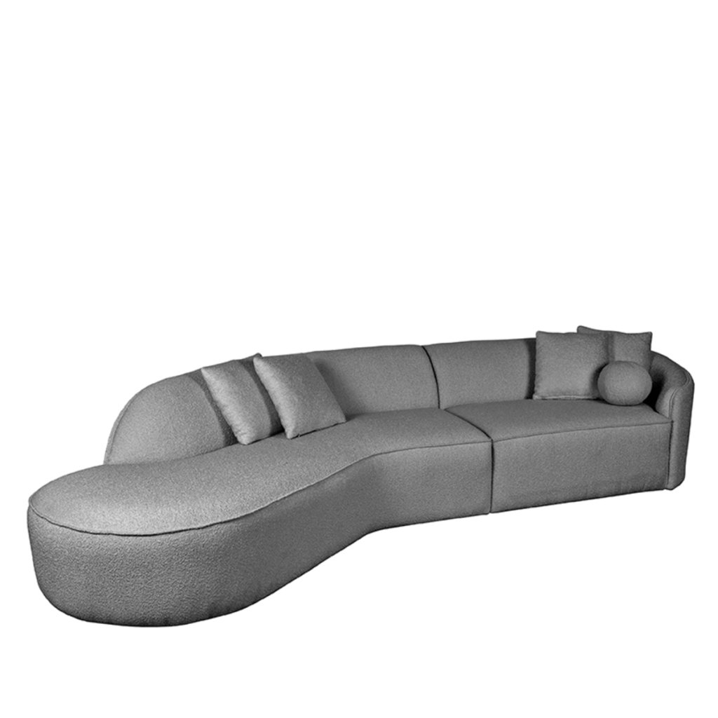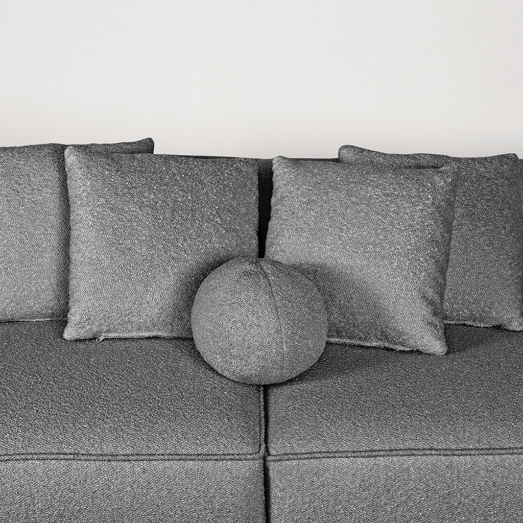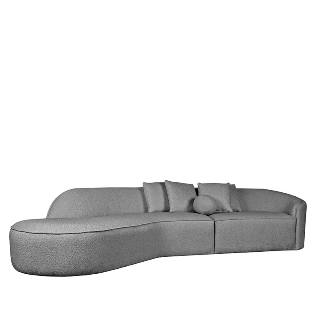 Čtyřmístná pohovka STELVIO od holandského výrobce industriálního nábytku LABEL51. Pohovka STELVIO je luxusní, velmi kvalitní pohovka, nejkrásnějších přírodních oblých tvarů a velmi působivého vzhledu. STELVIO tvoří dřevěná konstrukce a potah je z kvalitní tkaniny bouclé. Kvalitní potah v šedé barvě pokrývá výplň z odolné pěny. Pohovka se dodává se čtyřmi čtvercovými polštáři 40x40 cm čalouněnými látkou bouclé a čalouněným polštářkem s tvarem koule. Pohovka STELVIO má čtyři sedadla a lenošku vlevo. STELVIO má svůj dominantní a robustní design.