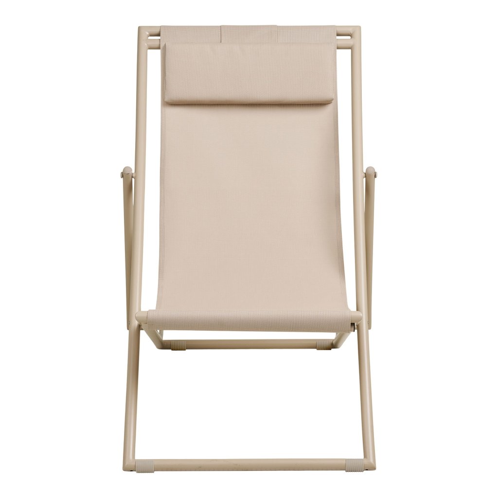 Designové zahradní lehátko CURTIS od dánské značky nádherného dánského dodavatele HOUSE NORDIC. Lehátko CURTIS má kovovou konstrukci z lehkého a odolného hliníku v béžové barvě. Hliník je odolný vůči povětrnostním vlivům, díky čemuž je nenáročný na údržbu. Pohodlné ležení zajišťuje příjemný sedák z béžové textilie. Lehátko je pak výškově nastavitelné pro opalování, čtení knihy nebo dohled nad dětmi v bazénu.