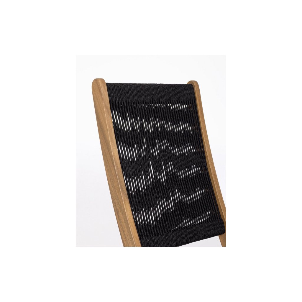 Stylová zahradní dřevěná židle DANUBIO od italského výrobce stylového nábytku BIZZOTTO. Židle má 4 decentní dřevěné nohy, které jsou navzájem propojeny dalšími laťkami. Nohy přecházejí v sedák, který má tvar mřížky z tenkých dřívek masivního akáciové dřeva, které se vyznačuje vysokou odolností proti nepříznivým venkovním vlivům. Dřevo je navíc ošetřeno olejem, díky čemuž se zvyšuje jeho odolnost a dostává tak krásnou hnědou barvu. Vrchní opěrka je pak tvořena propletenými lanky z polypropylenu v černé barvě. Židle DANUBIO je skládací, takže je při potřebě uschování poměrně skladná.