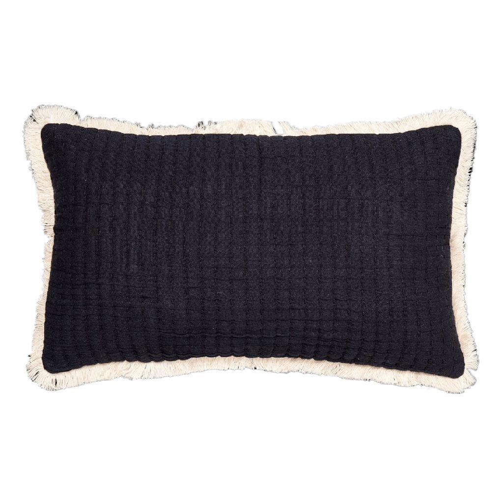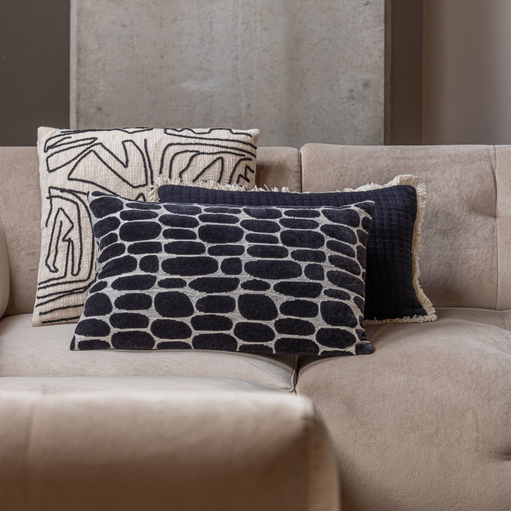Dekorativní polštářek CALEB od holandského výrobce kvalitního nábytku WOOOD. Polštářek je velmi pohodlný a příjemný na dotek, jelikož je vyroben ze stoprocentní bavlny. Černobílý potah s originálními okraji má na zadní straně zip, můžete tedy snadno vyčistit případné nečistoty. Krásně nakombinujete s dalšími polštářky s jinými vzory v podobných barvách. Ideální pro váš stylový obývací pokoj.