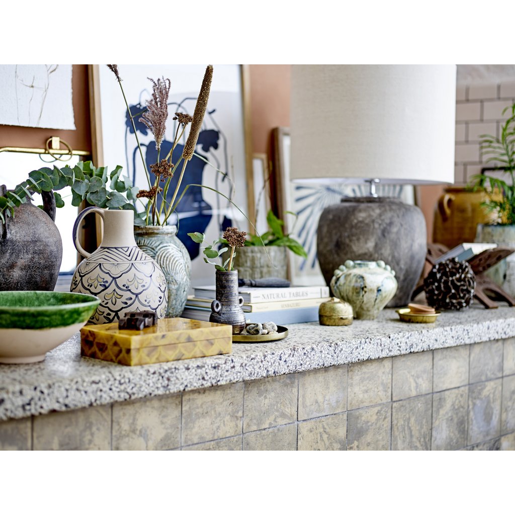 Terakotová dekorativní váza DAMIAN od dánského výrobce designového nábytku BLOOMINGVILLE. Krásná dekorativní váza DAMIAN je kompletně vyrobena z terakoty v zeleném provedení s výškou 22 cm. Váza má krásnou zelenou reaktivní glazuru a gravírovaný abstraktní vzor. Můžete ji položit samostatně na podlahu nebo kamkoli jinam ve vašem interiéru.