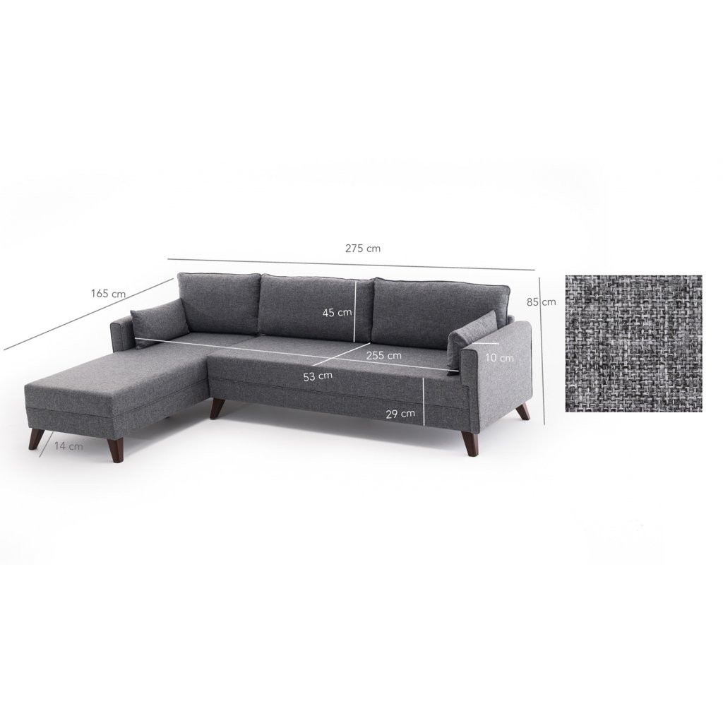 Krásná rohová pohovka BELLA od výrobce nábytku a pohovek HANAH HOME. Pohovka ARDOSA má konstrukci v kombinaci osmi nožiček z jedlového dřeva a mdf desek, na níž je připevněna pěna a následně polyesterový potah v nádherné šedé barvě. Pohovka má lenošku s rozměry 165x75cm na levé straně pro vaše maximální pohodlí. Díky délce 275 cm, se na pohovku krásně vejdou minimálně 3 osoby. Pohovka je pak doplněna 3 podlouhlými polštářky na opěradle a 2 menšími polštářky na stranách, ve stejném barevném provedení.
