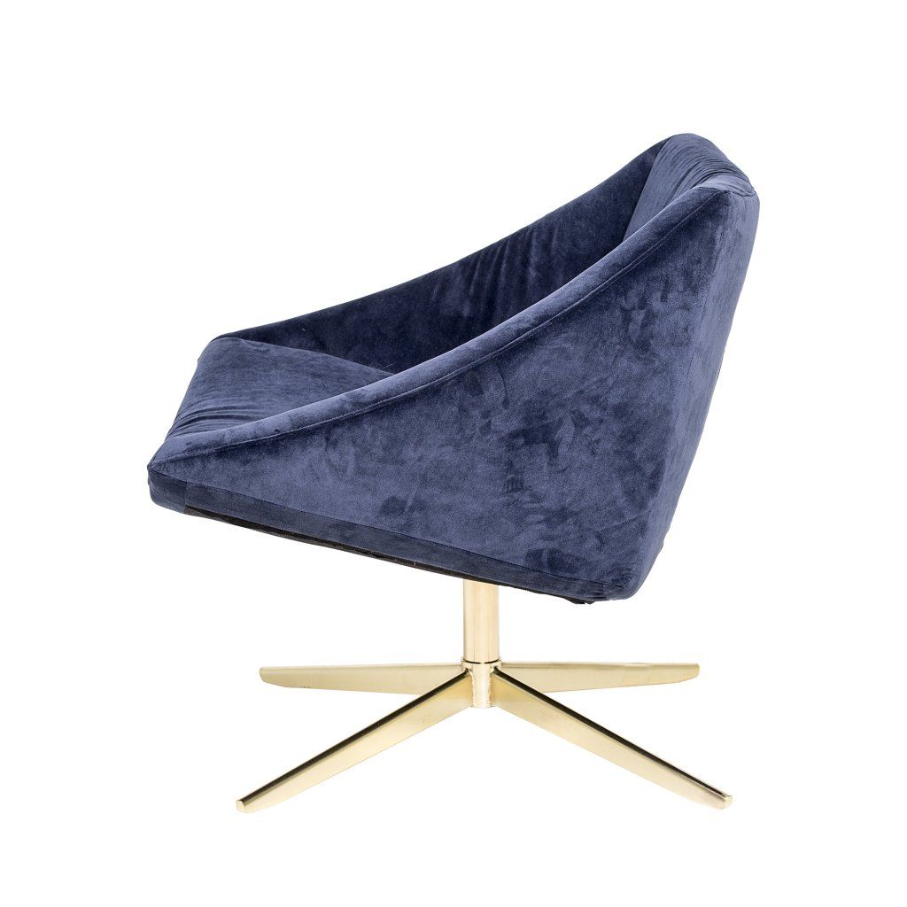 Designové křeslo ELEGANT od dánské značky nádherného nábytku BLOOMINGVILLE. Pevná a stabilní základna křesla z lakovaného kovu, doplňuje čalounění z tmavě modré sametové látky, které je velmi příjemné na dotek. Tato krásná a nevšední kombinace dělá z křesla velmi unikátní výrobek. Křeslo ELEGANT je velmi prostorné a poskytuje pohodlné sezení.