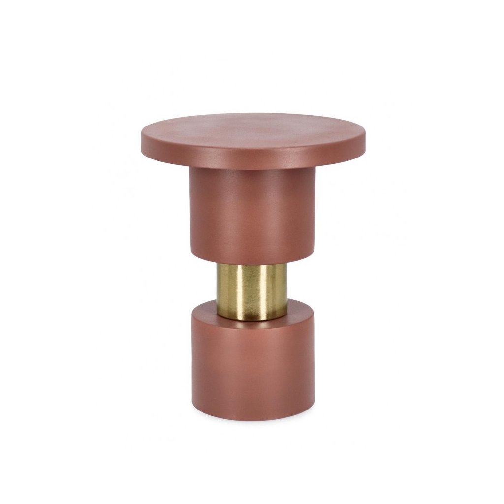 Designový odkládací stolek MITUL od italského výrobce stylového nábytku BIZZOTTOStolek MITUL  je kompletně vyroben z oceli v cihlové matné barvě. Zajímavým doplňkem je zlaté zúžení uprostřed centrální nohy, které stolku dodává eleganci a luxusní vzhled. Vrchní deska má průměr 35 cm a stolek je ideální například do vašeho obývacího pokoje hned vedle pohovky pro odložení kávy nebo čaje.