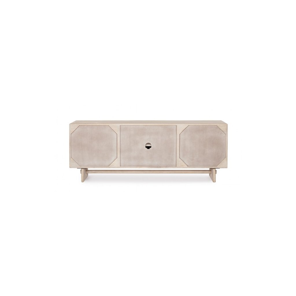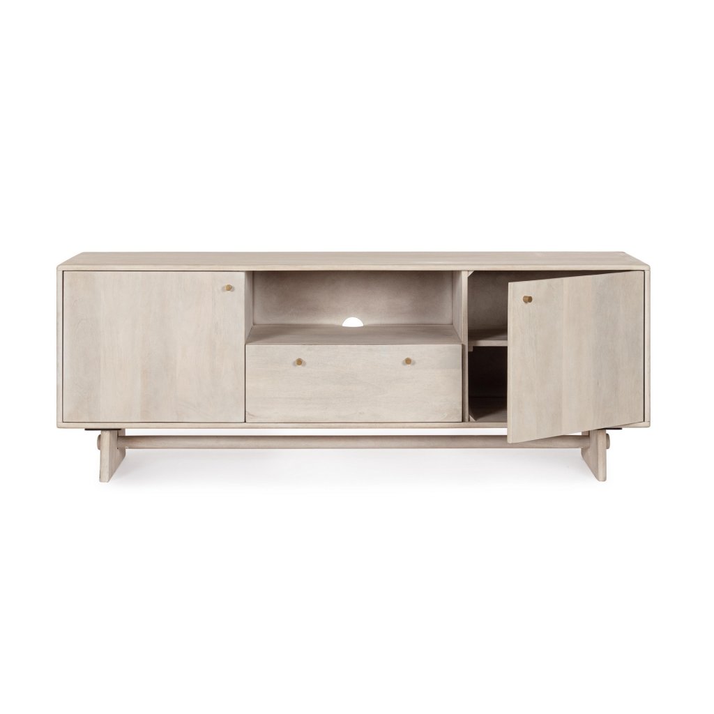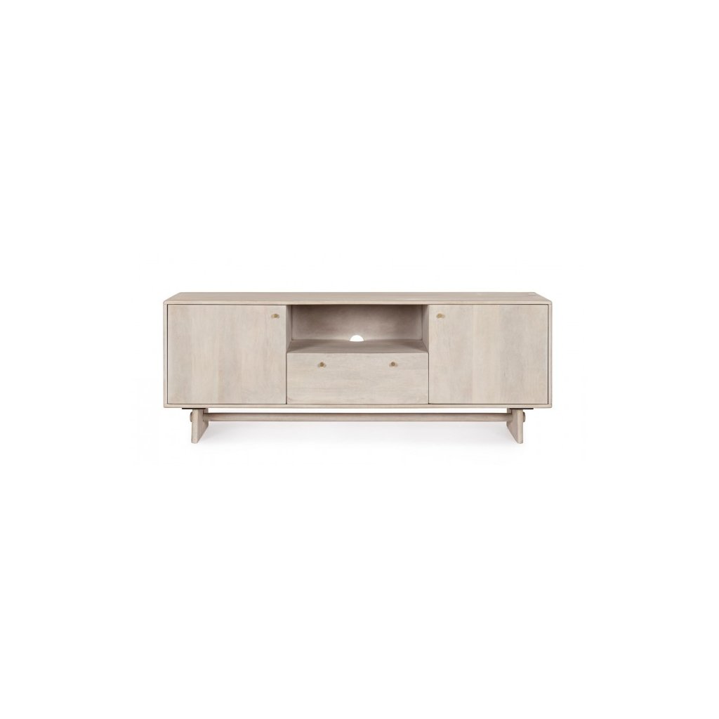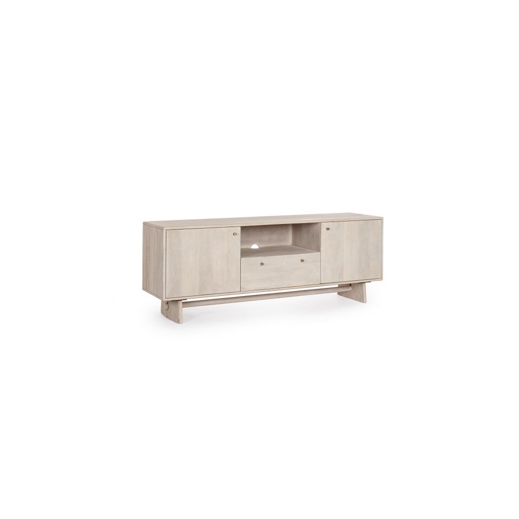 Designový dřevěný TV stolek ELISHEVA od italského výrobce kvalitního nábytku BIZZOTTO ve světlém provedení mangového dřeva.