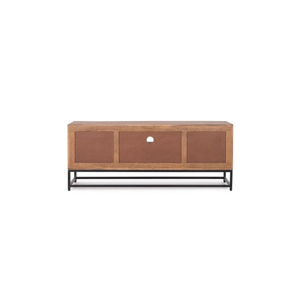 Designový TV stolek KINDIA od italské firmy stylového nábytku BIZZOTTO z mangového dřeva s rýhami a z černé oceli.