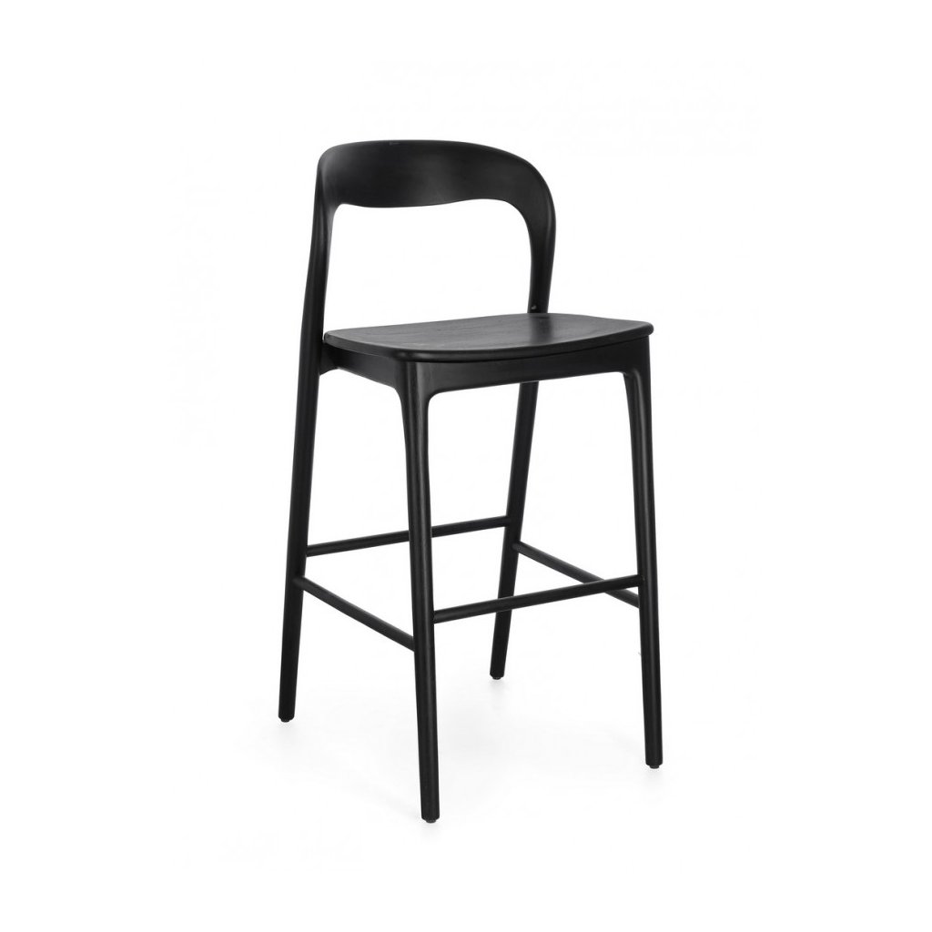 Designová barová židle MILEY od italského výrobce nádherného nábytku BIZZOTTO v černém provedení masivního teakového dřeva.