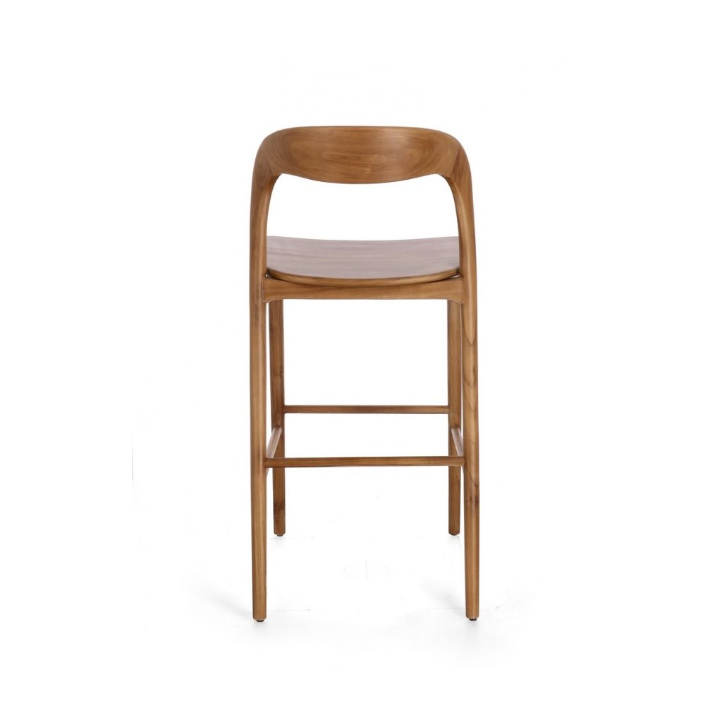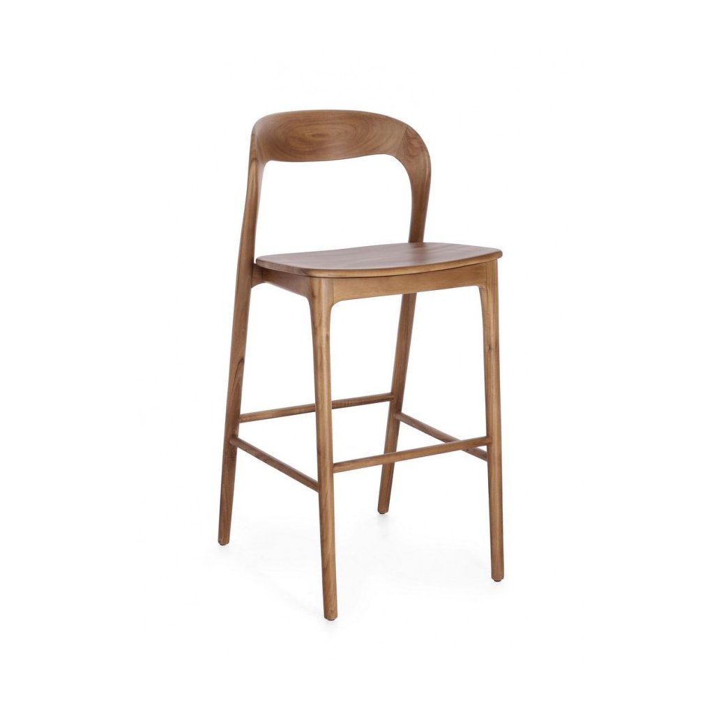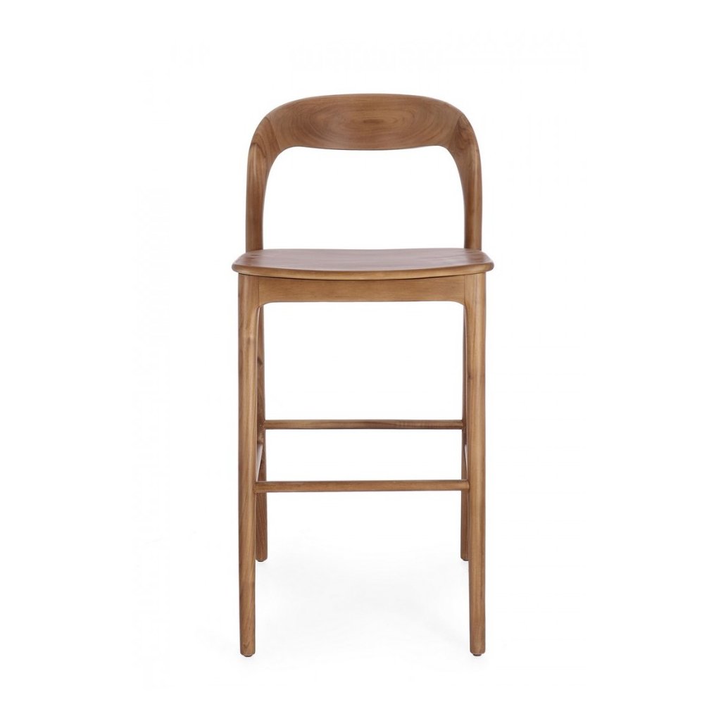 Designová barová židle MILEY od italského výrobce nádherného nábytku BIZZOTTO v hnědém provedení masivního teakového dřeva.