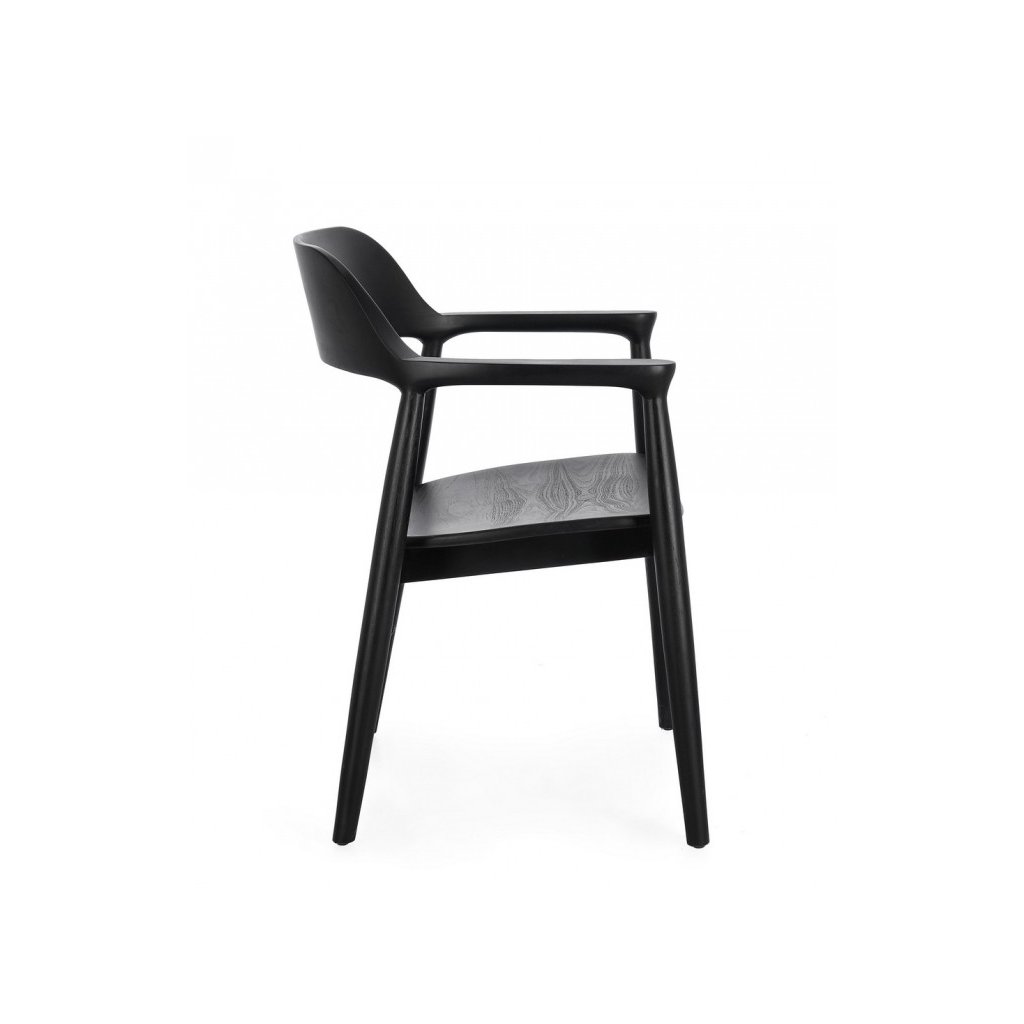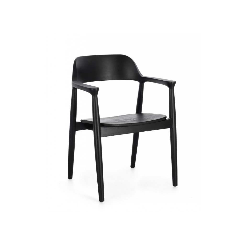 Designová dřevěná židle IDRIS od italského výrobce nádherného nábytku BIZZOTTO. Židle je kompletně vyrobena z masivního teakového dřeva v černé barvě s transparentním nitrocelulózovým lakem. 4 nohy zajišťují maximální stabilitu, nosnost a pevnost. Pro vaše pohodlí vám poslouží praktické područky a opěrka. Krásná a stylová židlička.