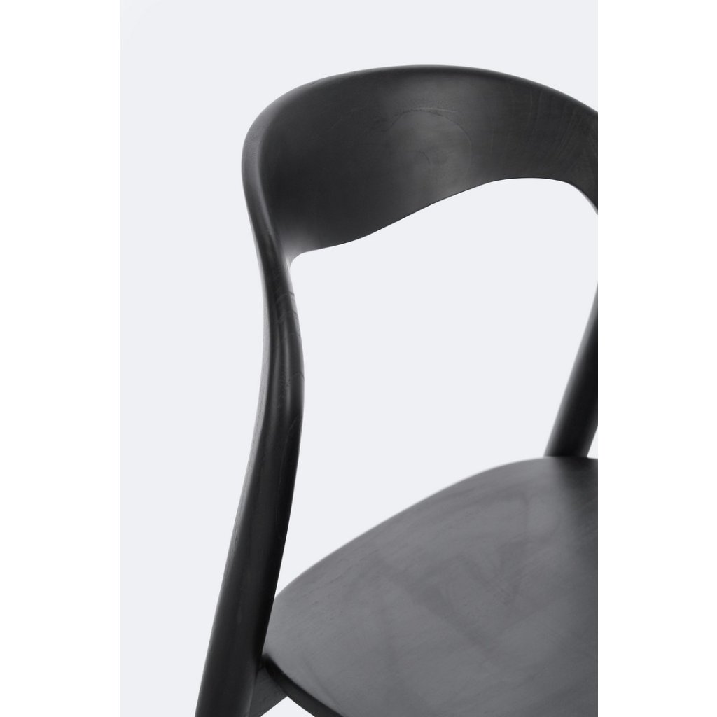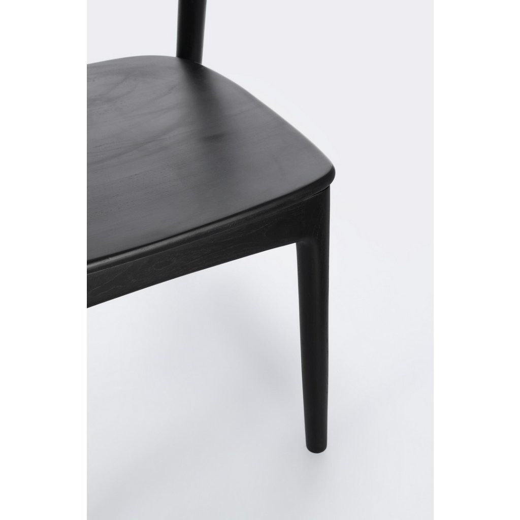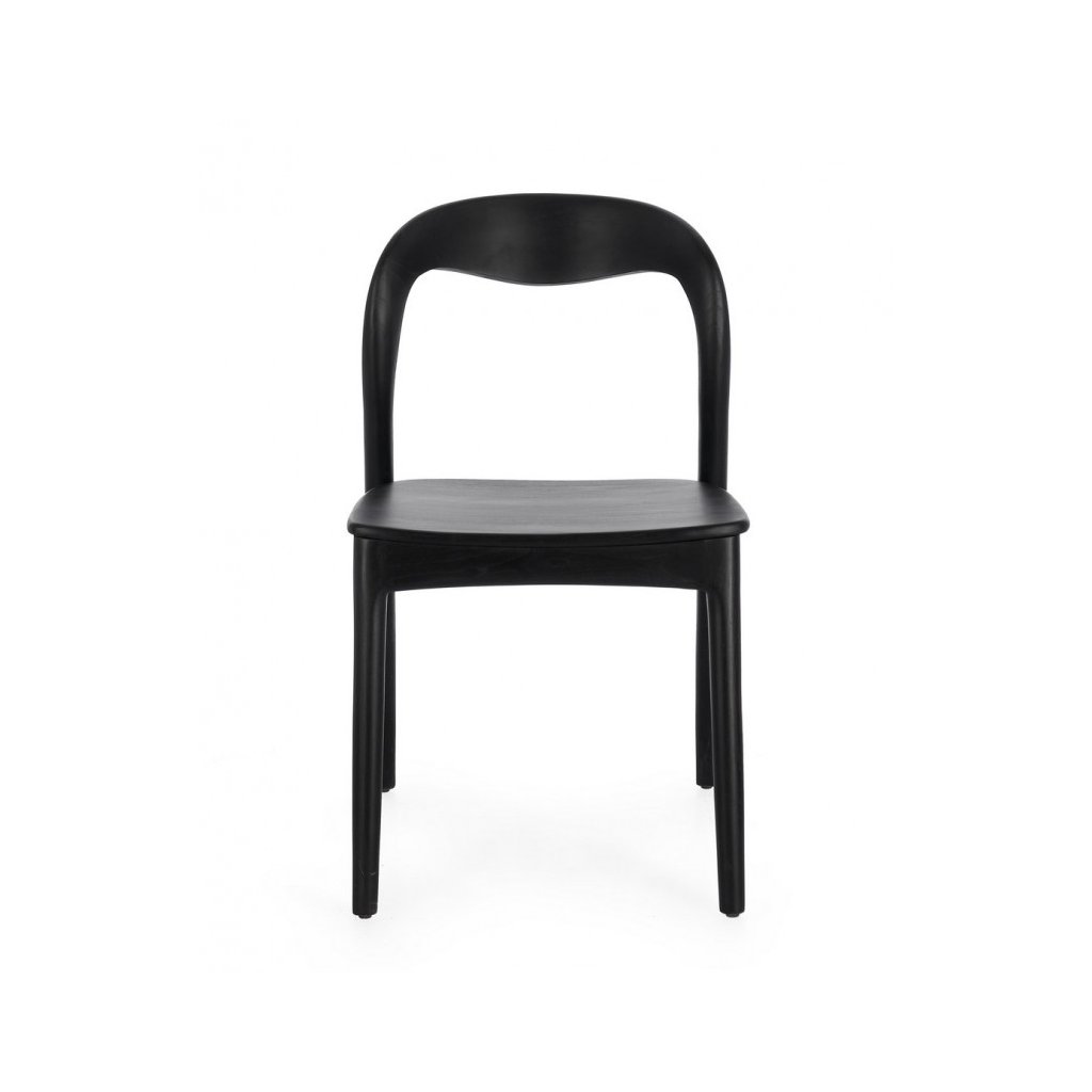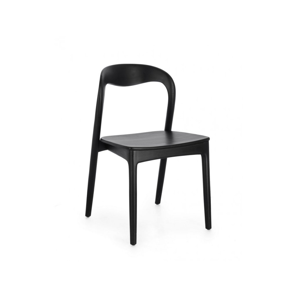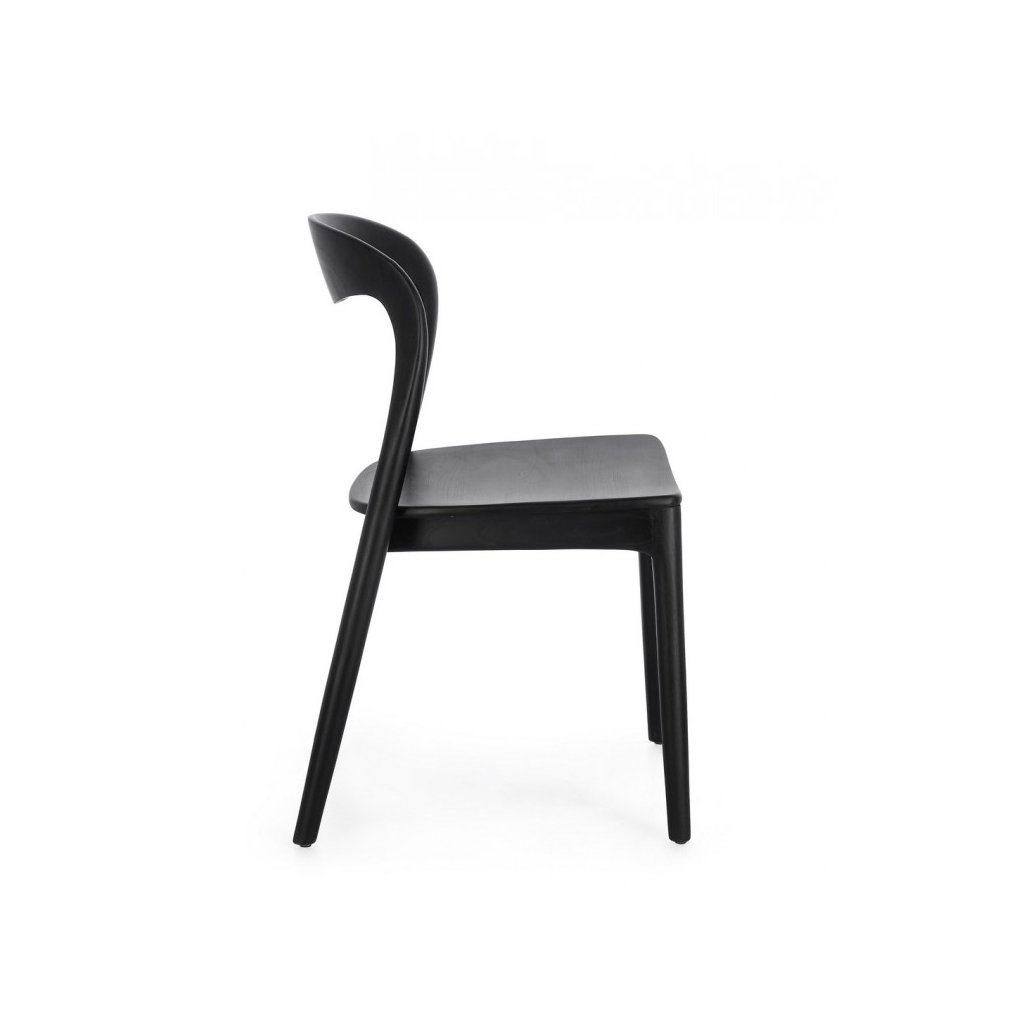 Designová dřevěná židle MILEY od italského výrobce nádherného nábytku BIZZOTTO.  Židle je kompletně vyrobena z masivního teakového dřeva v černé barvě s transparentním nitrocelulózovým lakem. 4 decentní nohy přecházejí v pevný podsedák a zadní nepatrnou opěrku. Krásná a stylová židlička.