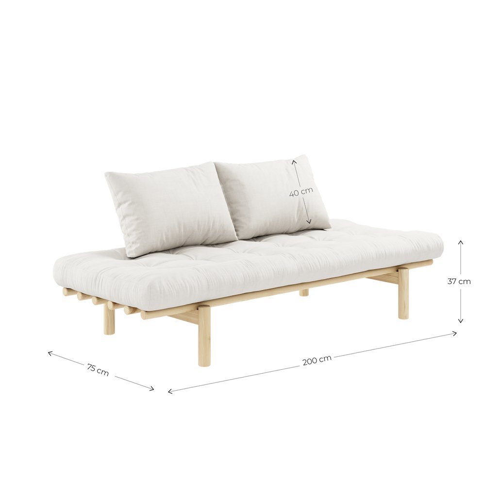 Stylová pohovka PACE od výrobce stylového nábytku a pohovek KARUP DESIGN. Pohovka je dodávána z vysoce kvalitního borovicového dřeva s certifikací FSC ve světlém provedení a výplní futonové matrace z pěny, kterou pokrývá bavlněný a polyesterový povlak v olivově zelené barvě. Futonová matrace je velmi pohodlná a příjemná na dotyk. Moderní kus nábytku s rozměry 75x200 cm, který vytvoří ve vaší domácnosti klid a pohodlí. Vyniká jednoduchým designem, který se snadno začlení do každého interiéru.