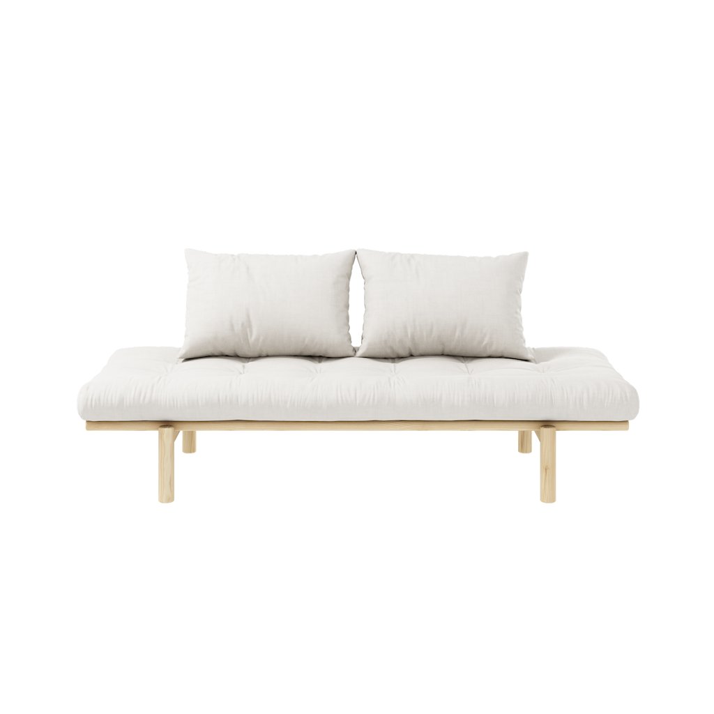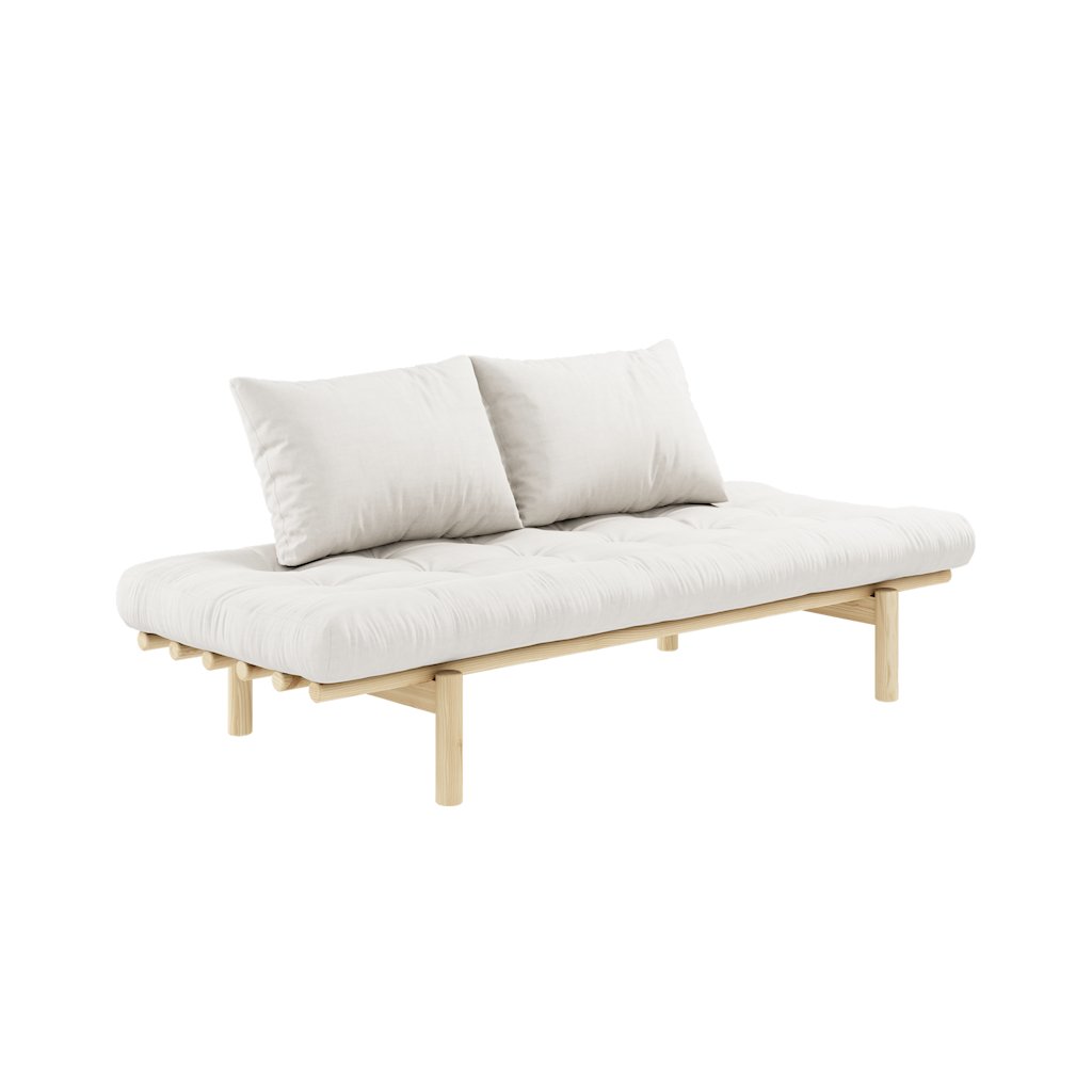 Stylová pohovka PACE od výrobce stylového nábytku a pohovek KARUP DESIGN. Pohovka je dodávána z vysoce kvalitního borovicového dřeva s certifikací FSC ve světlém provedení a výplní futonové matrace z pěny, kterou pokrývá bavlněný a polyesterový povlak v přírodní barvě. Futonová matrace je velmi pohodlná a příjemná na dotyk. Moderní kus nábytku s rozměry 75x200 cm, který vytvoří ve vaší domácnosti klid a pohodlí. Vyniká jednoduchým designem, který se snadno začlení do každého interiéru.