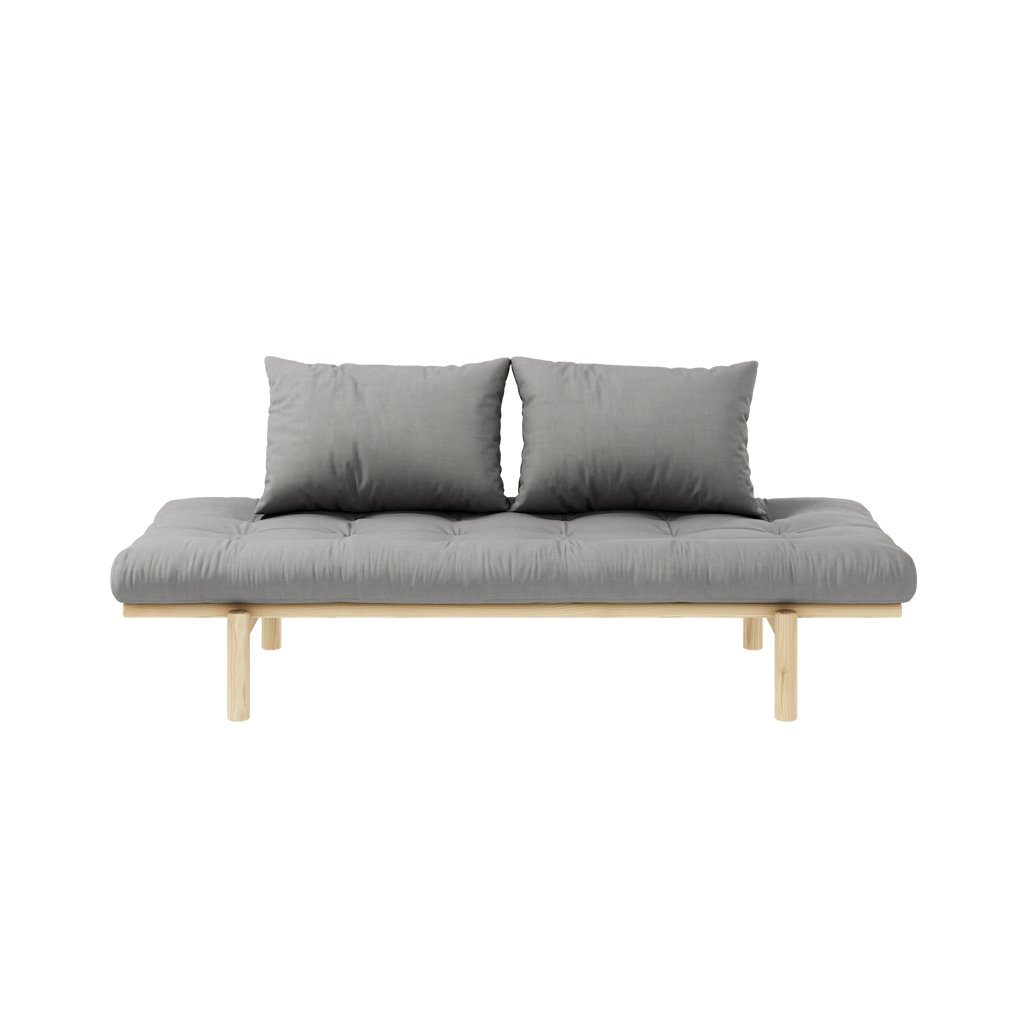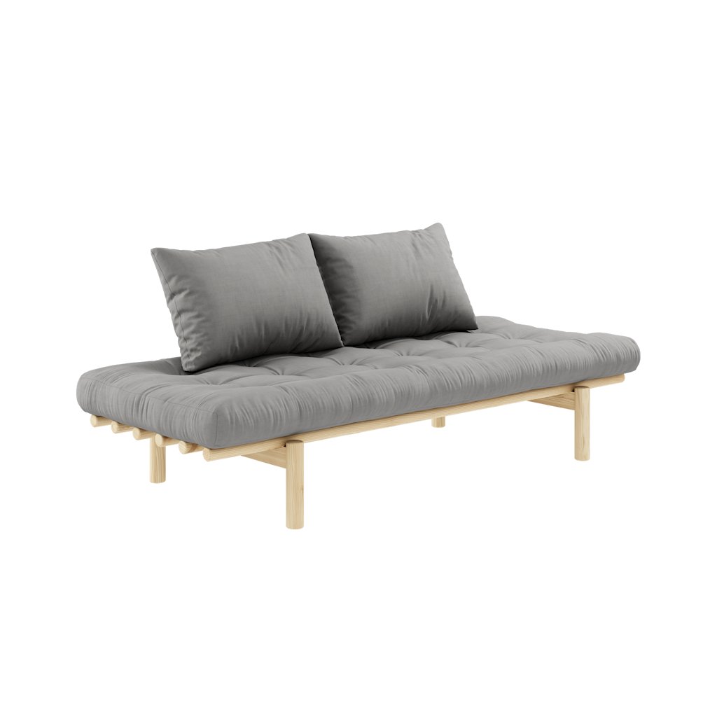 Stylová pohovka PACE od výrobce stylového nábytku a pohovek KARUP DESIGN. Pohovka je dodávána z vysoce kvalitního borovicového dřeva s certifikací FSC ve světlém provedení a výplní futonové matrace z pěny, kterou pokrývá bavlněný a polyesterový povlak v šedé barvě. Futonová matrace je velmi pohodlná a příjemná na dotyk. Moderní kus nábytku s rozměry 75x200 cm, který vytvoří ve vaší domácnosti klid a pohodlí. Vyniká jednoduchým designem, který se snadno začlení do každého interiéru.