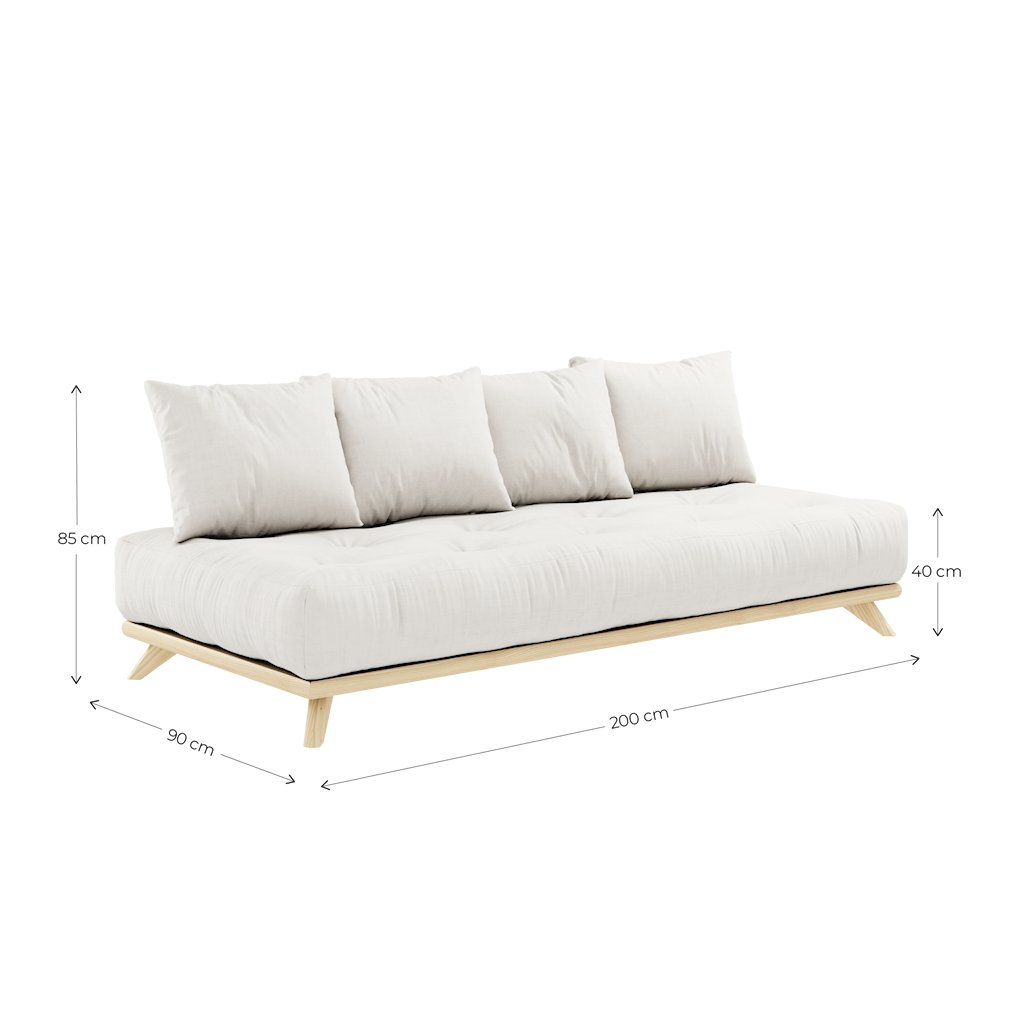 Dřevěná pohovka SENZA od dánského výrobce stylového nábytku KARUP DESIGN. Pohovka je dodávána z vysoce kvalitního borovicového dřeva s certifikací FSC ve světlém provedení a výplní matrace z pěny, kterou pokrývá bavlněný a polyesterový povlak v barvě bronzu. K pohovce můžete přidat podnožku Senza ve stejné barvě a díky tomu se pohovka stává zajímavým, designovým kouskem a podporuje společenské chvíle a pohodlný odpočinek. Odebráním polštářů získáte postel pro přespání vaší návštěvy.