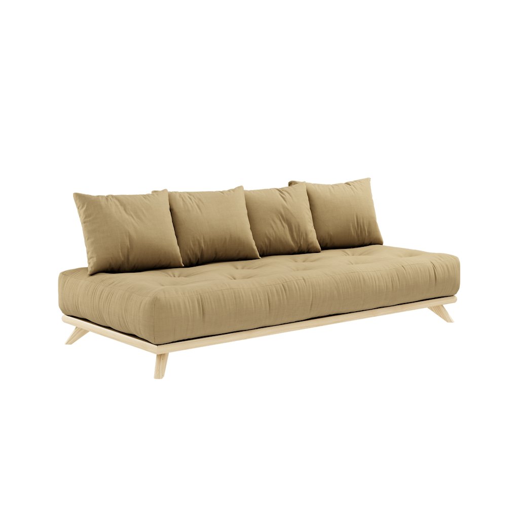 Dřevěná pohovka SENZA od dánského výrobce stylového nábytku KARUP DESIGN. Pohovka je dodávána z vysoce kvalitního borovicového dřeva s certifikací FSC ve světlém provedení a výplní matrace z pěny, kterou pokrývá bavlněný a polyesterový povlak v hořčičné barvě. K pohovce můžete přidat podnožku Senza ve stejné barvě a díky tomu se pohovka stává zajímavým, designovým kouskem a podporuje společenské chvíle a pohodlný odpočinek. Odebráním polštářů získáte postel pro přespání vaší návštěvy.