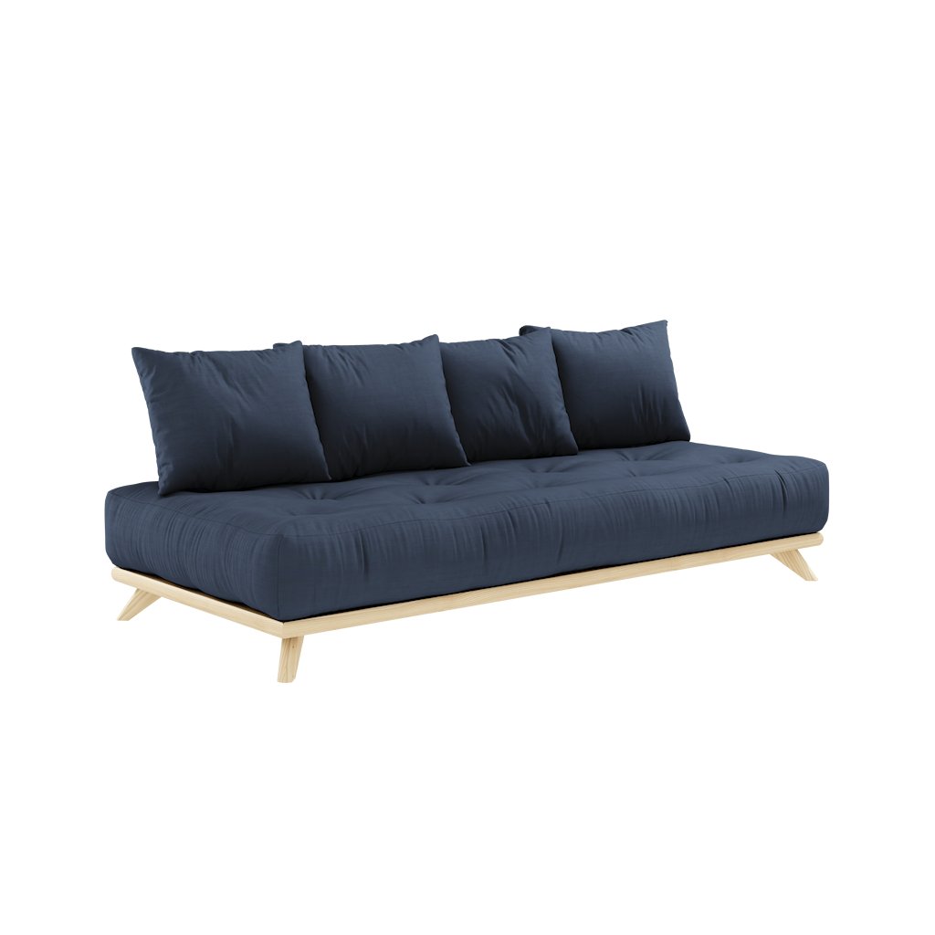 Dřevěná pohovka SENZA od dánského výrobce stylového nábytku KARUP DESIGN. Pohovka je dodávána z vysoce kvalitního borovicového dřeva s certifikací FSC ve světlém provedení a výplní matrace z pěny, kterou pokrývá bavlněný a polyesterový povlak v modré barvě. K pohovce můžete přidat podnožku Senza ve stejné barvě a díky tomu se pohovka stává zajímavým, designovým kouskem a podporuje společenské chvíle a pohodlný odpočinek. Odebráním polštářů získáte postel pro přespání vaší návštěvy.