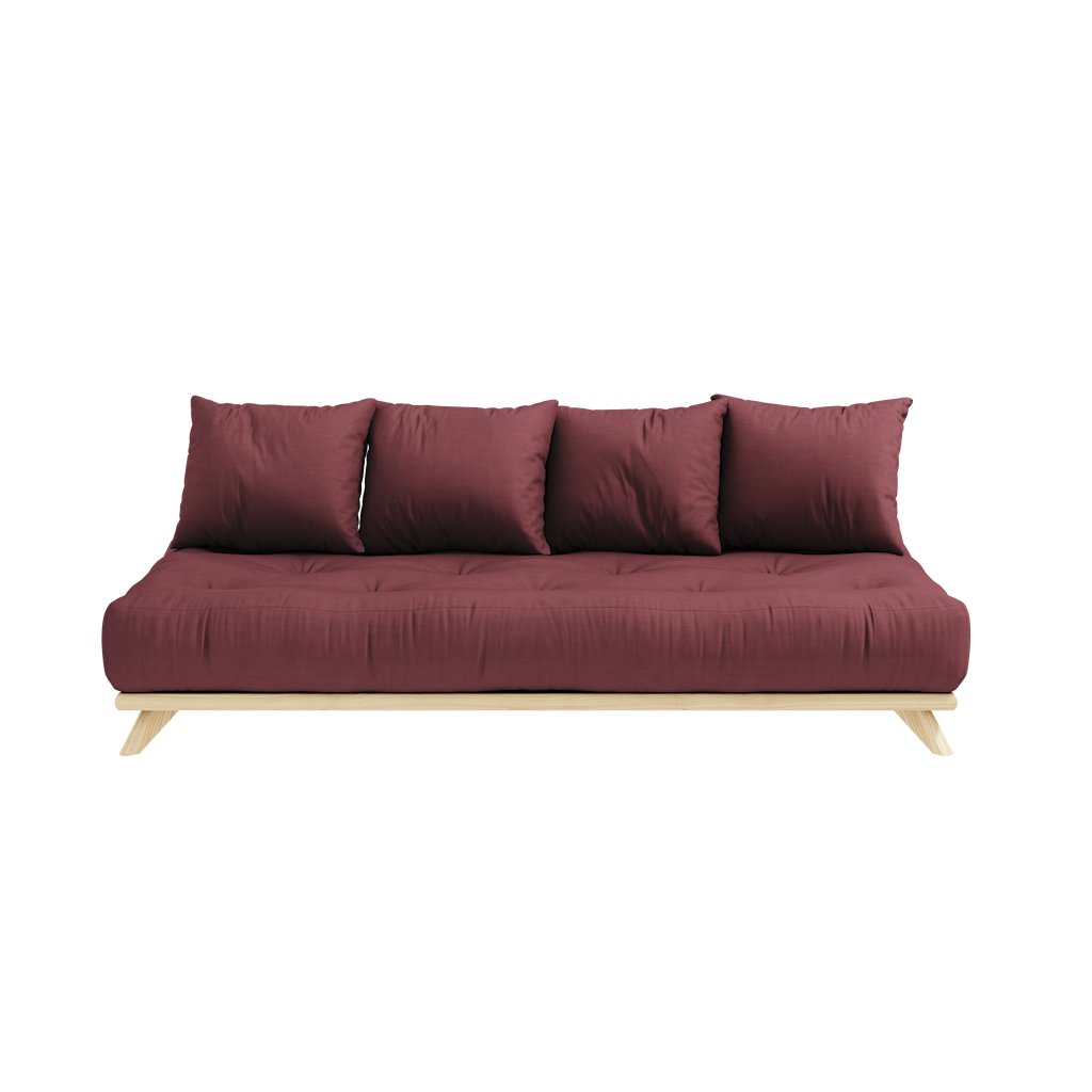Dřevěná pohovka SENZA od dánského výrobce stylového nábytku KARUP DESIGN. Pohovka je dodávána z vysoce kvalitního borovicového dřeva s certifikací FSC ve světlém provedení a výplní matrace z pěny, kterou pokrývá bavlněný a polyesterový povlak ve vínové barvě. K pohovce můžete přidat podnožku Senza ve stejné barvě a díky tomu se pohovka stává zajímavým, designovým kouskem a podporuje společenské chvíle a pohodlný odpočinek. Odebráním polštářů získáte postel pro přespání vaší návštěvy.