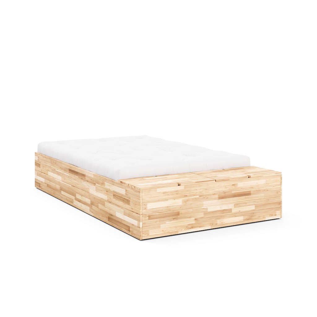 Designová postel BASEMENT od dánské značky nádherného dánského dodavatele KARUP. BASEMENT kombinuje elegantní prostor na spaní a úložný prostor v jednom. Ideální pro menší domy, kde se počítá každý metr čtvereční. Celá spodní strana postele nabízí úložný prostor. Volitelná úložná lavice poskytuje další místo k sezení i úložný prostor, díky čemuž je postel multifunkčním kusem nábytku. Konstrukce z borovicového dřeva s certifikací FSC podtrhuje přirozený charakter postele a důraz na udržitelnost.
