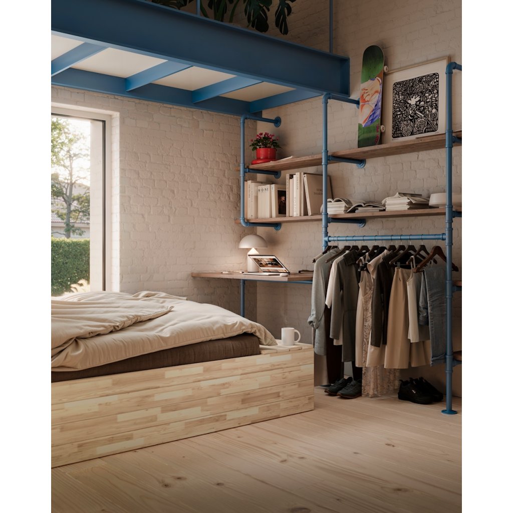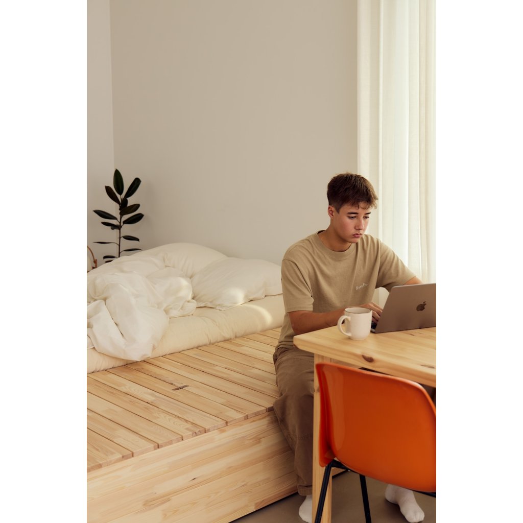 Postel BASEMENT nejlépe vynikne v interiéru, který staví na jednoduchosti a přírodních materiálech. K posteli se hodí jednoduché noční stolky z masivního dřeva nebo v čistém, nenápadném designu, které nechají vyniknout samotnou konstrukci postele. Atmosféru prostoru podpoří měkký koberec s jemnou strukturou a doplňky z přírodních materiálů, jako je keramika, dřevo nebo textil. Teplé, tlumené osvětlení v podobě nástěnných nebo stojacích lamp vytvoří příjemné světelné akcenty a zvýrazní klidný charakter ložnice.
