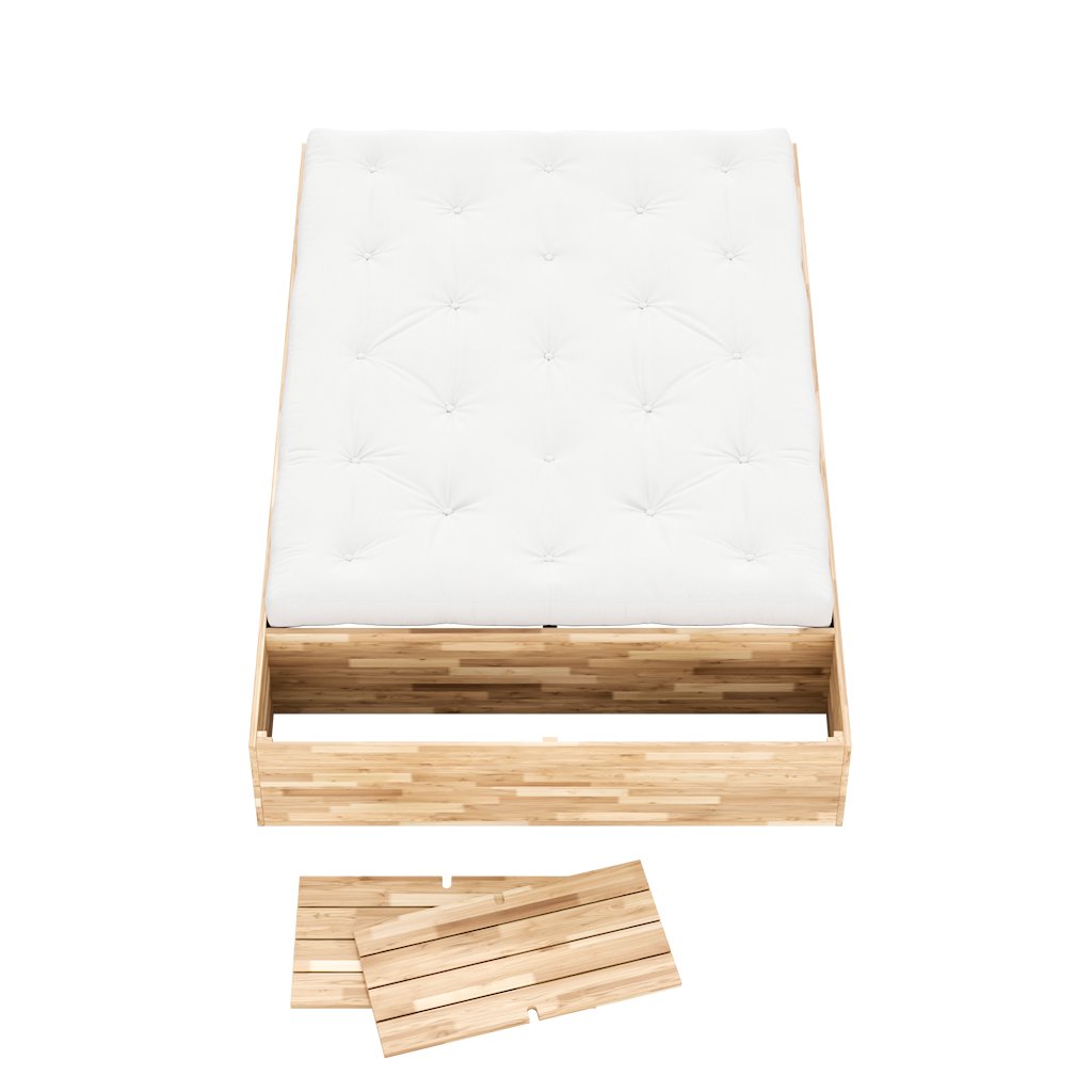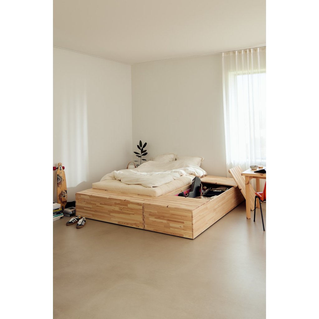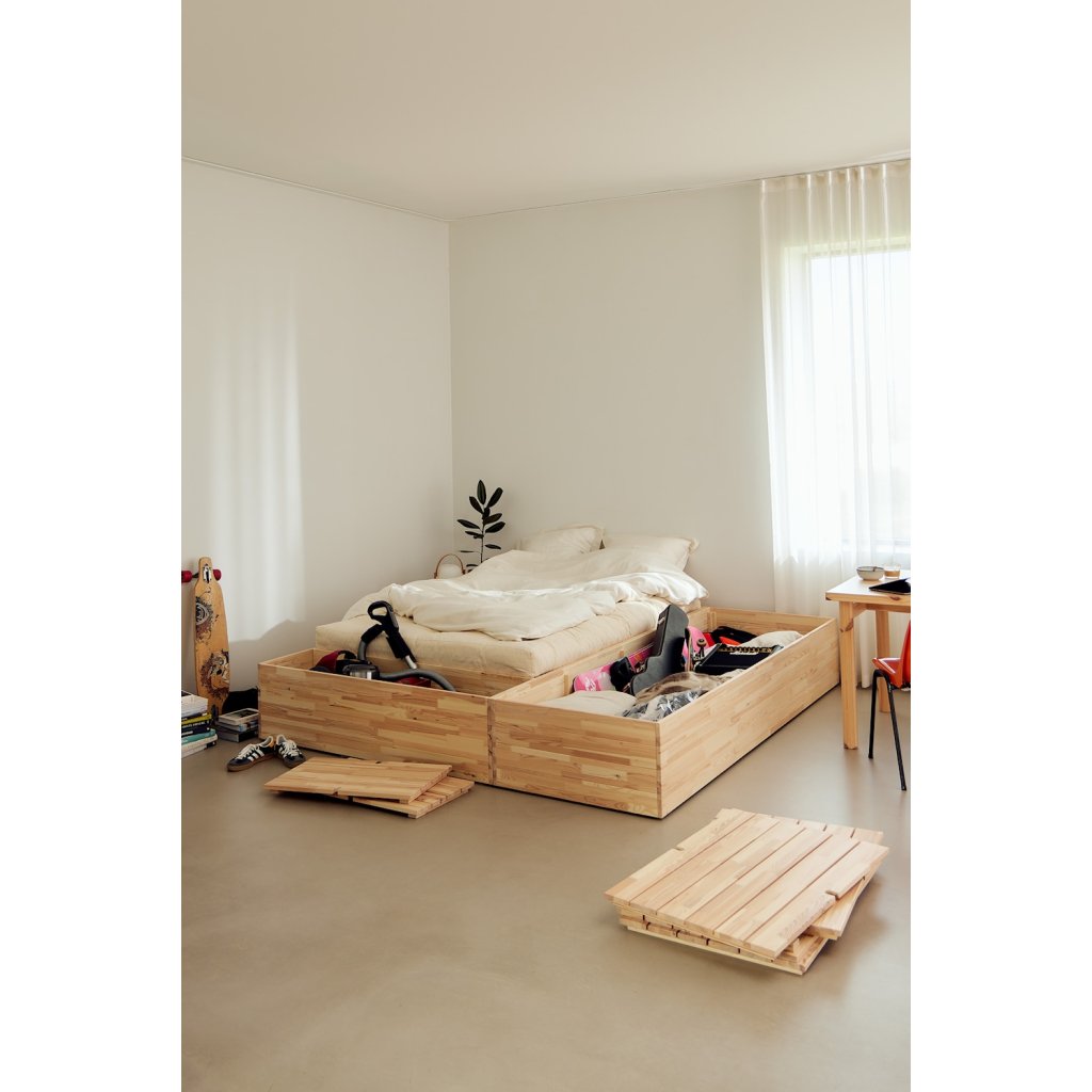 Designová postel BASEMENT od dánské značky nádherného dánského dodavatele KARUP. BASEMENT kombinuje elegantní prostor na spaní a úložný prostor v jednom. Ideální pro menší domy, kde se počítá každý metr čtvereční. Celá spodní strana postele nabízí úložný prostor. Volitelná úložná lavice poskytuje další místo k sezení i úložný prostor, díky čemuž je postel multifunkčním kusem nábytku. Konstrukce z borovicového dřeva s certifikací FSC podtrhuje přirozený charakter postele a důraz na udržitelnost.