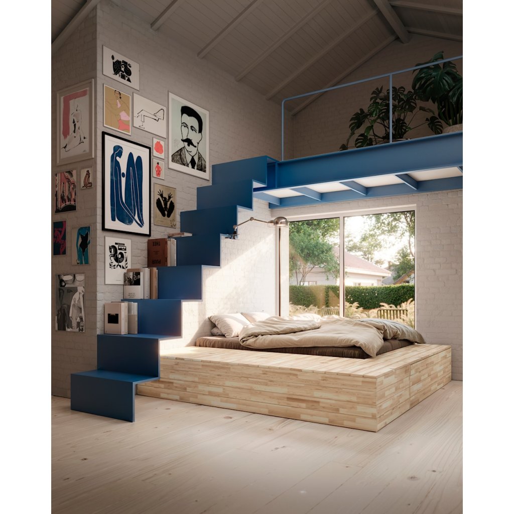Postel BASEMENT nejlépe vynikne v interiéru, který staví na jednoduchosti a přírodních materiálech. K posteli se hodí jednoduché noční stolky z masivního dřeva nebo v čistém, nenápadném designu, které nechají vyniknout samotnou konstrukci postele. Atmosféru prostoru podpoří měkký koberec s jemnou strukturou a doplňky z přírodních materiálů, jako je keramika, dřevo nebo textil. Teplé, tlumené osvětlení v podobě nástěnných nebo stojacích lamp vytvoří příjemné světelné akcenty a zvýrazní klidný charakter ložnice.