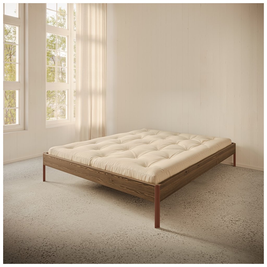 Postel CORE nejlépe vynikne v interiéru, který staví na jednoduchosti a přírodních materiálech. K posteli se hodí jednoduché noční stolky z masivního dřeva nebo v čistém, nenápadném designu, které nechají vyniknout samotnou konstrukci postele. Atmosféru prostoru podpoří měkký koberec s jemnou strukturou a doplňky z přírodních materiálů, jako je keramika, dřevo nebo textil. Teplé, tlumené osvětlení v podobě nástěnných nebo stojacích lamp vytvoří příjemné světelné akcenty a zvýrazní klidný charakter ložnice.