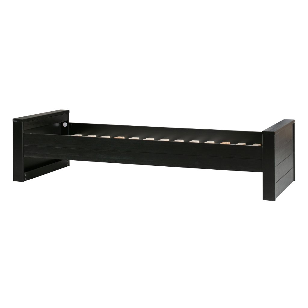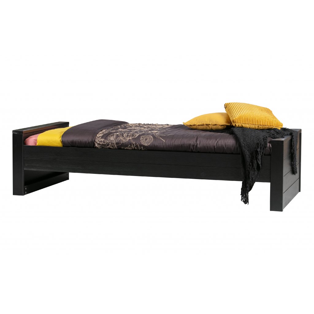 Postel DENNIS od holandského výrobce kvalitního nábytku WOOOD. Celá konstrukce postele sestává z desek masivní borovice s certifikátem FSC, což je ekologické a k přírodě šetrné zpracování dřeva. Tento kus nábytku je vyroben z kartáčovaného dřeva, žíly a detaily materiálu jsou proto zvýrazněny, což dává dřevu krásný a živý vzhled. Barevné provedení je černá a tato barva společně s moderním vzhledem zaručují, že se bude hodit do spoustu stylů a interiérů dětských pokojů či ložnic. Krásná a designová postel, která nezklame žádné z vašich ratolestí a zaručí, že tento kus nábytku bude ozdobou celého pokoje. Matrace a rošt nejsou součástí objednávky, nutno dokoupit. Produkt je vyroben z masivního dřeva a může obsahovat suky či jiné nedokonalosti přírodního dřeva, které není vadou výrobku.