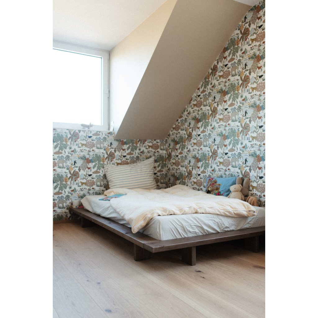 Postel JAPAN nejlépe vynikne v interiéru, který staví na jednoduchosti a přírodních materiálech. K posteli se hodí jednoduché noční stolky z masivního dřeva nebo v čistém, nenápadném designu, které nechají vyniknout samotnou konstrukci postele. Atmosféru prostoru podpoří měkký koberec s jemnou strukturou a doplňky z přírodních materiálů, jako je keramika, dřevo nebo textil. Teplé, tlumené osvětlení v podobě nástěnných nebo stojacích lamp vytvoří příjemné světelné akcenty a zvýrazní klidný charakter ložnice.
