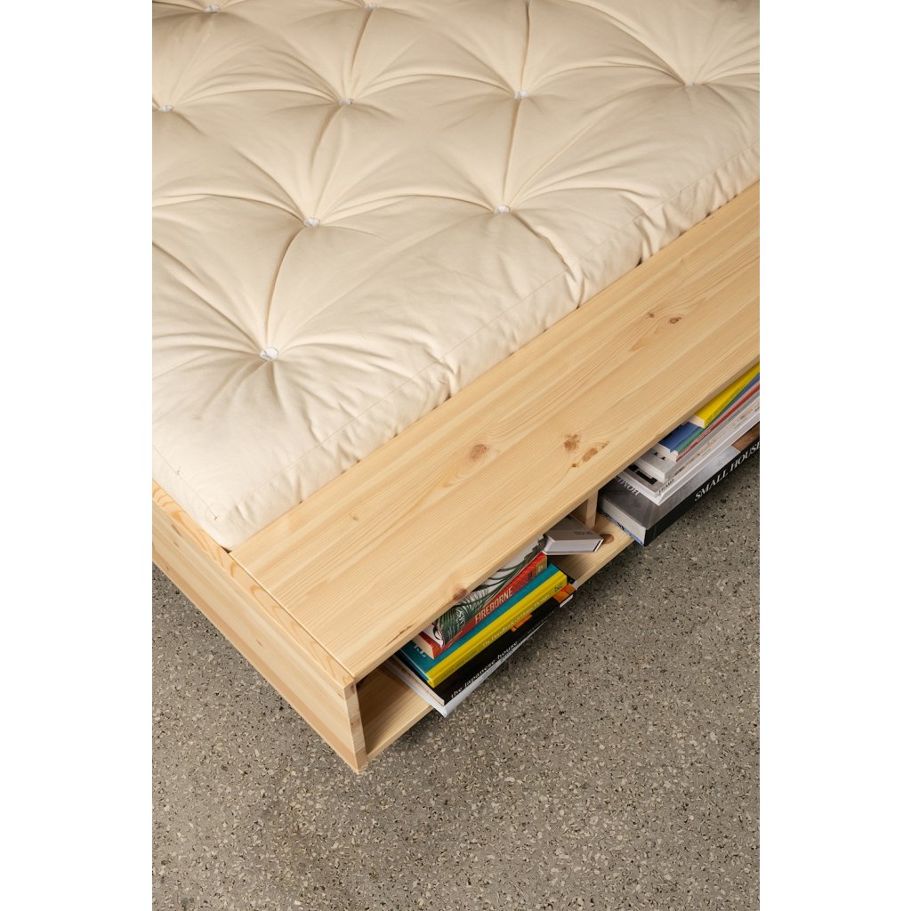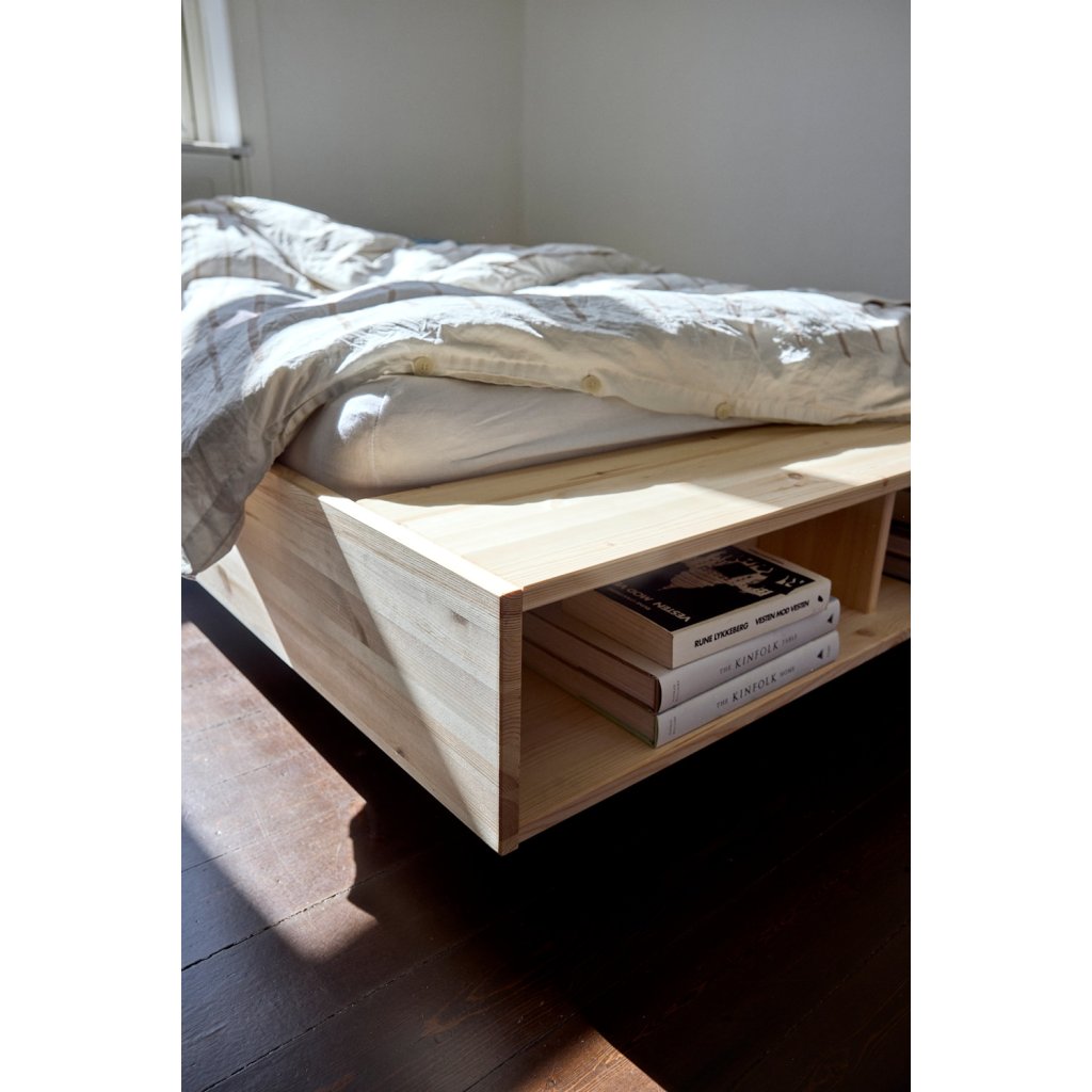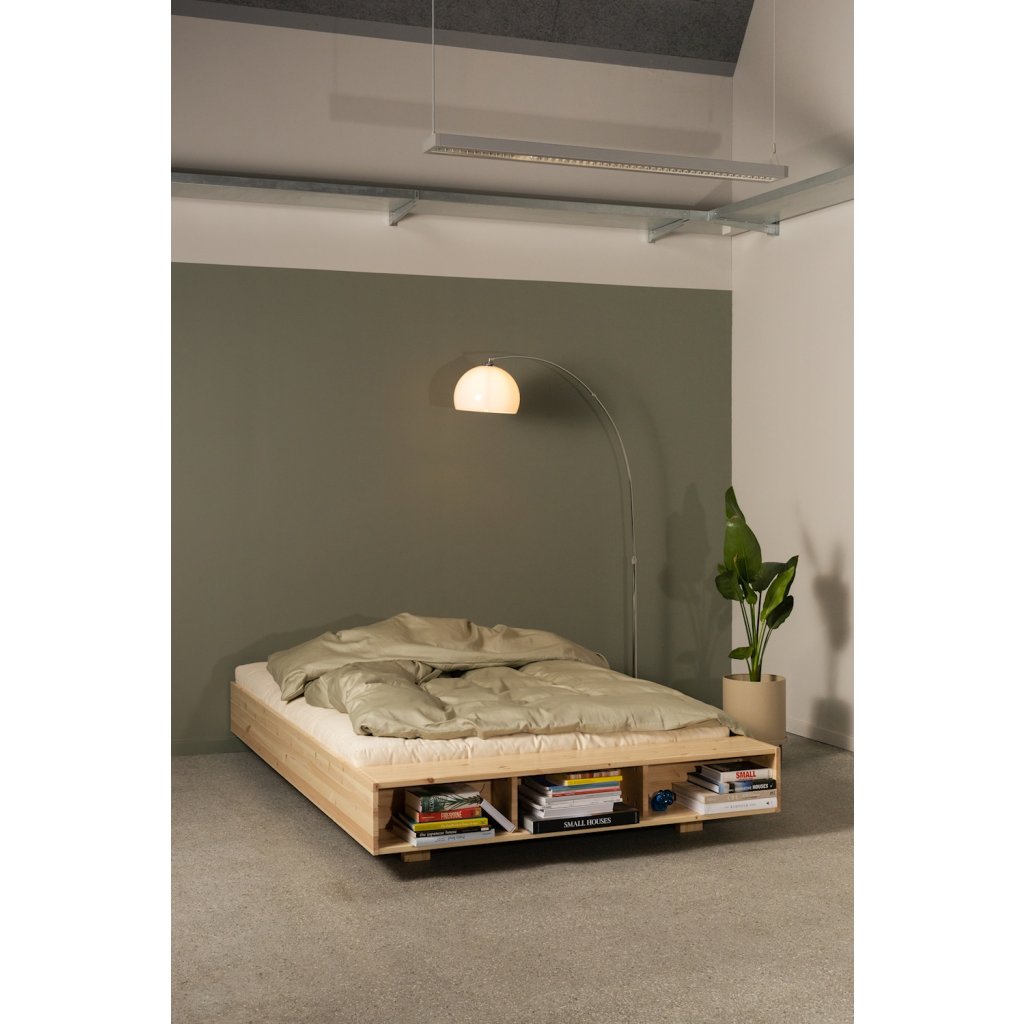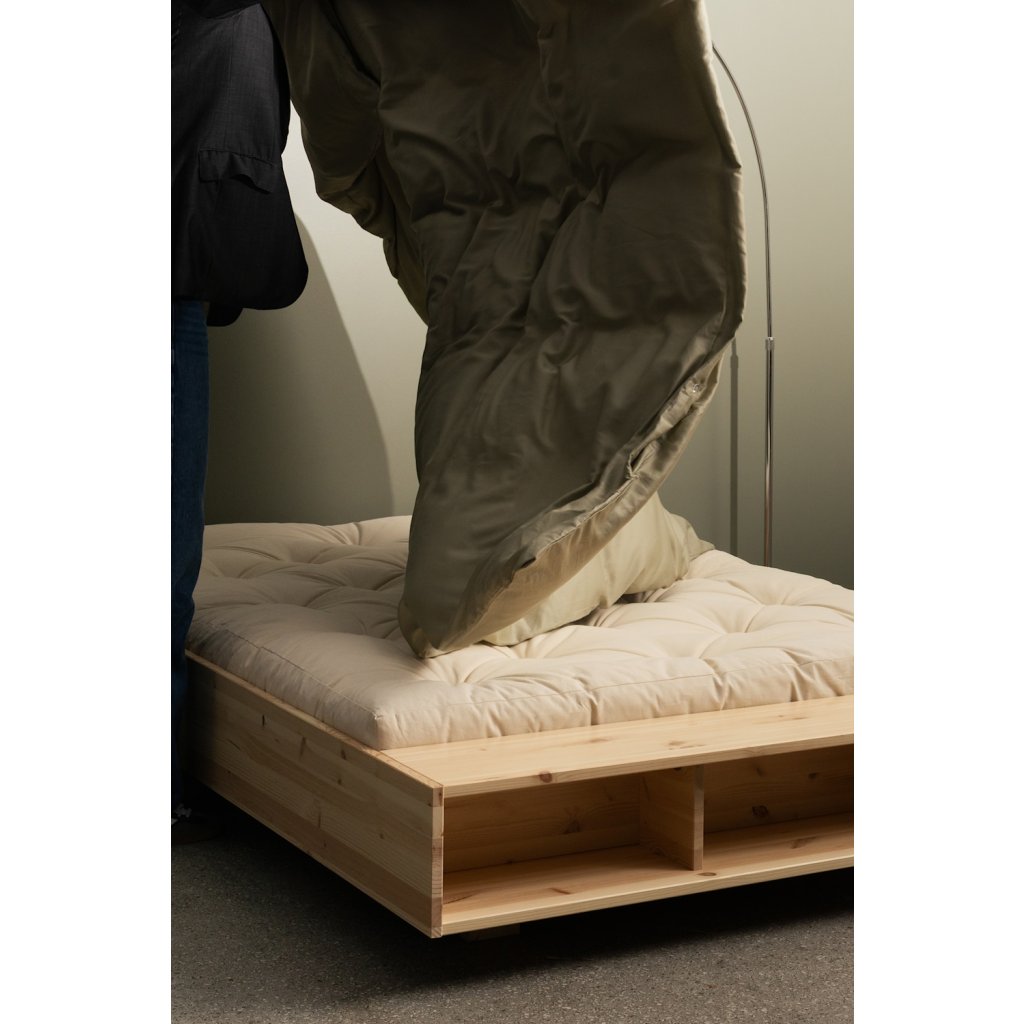 Designová postel MERGE od dánské značky nádherného dánského dodavatele KARUP. MERGE zaujme svým elegantním vzhledem a čistými liniemi, které přirozeně zapadnou do moderní i skandinávsky laděné ložnice. Díky integrovanému úložnému prostoru a praktické lavici v nohou postele nabízí MERGE více než jen místo ke spánku. Poskytuje prostor pro uložení knih, časopisů, dek nebo ranní kávy. Konstrukce z borovicového dřeva s certifikací FSC podtrhuje přirozený charakter postele a důraz na udržitelnost.
